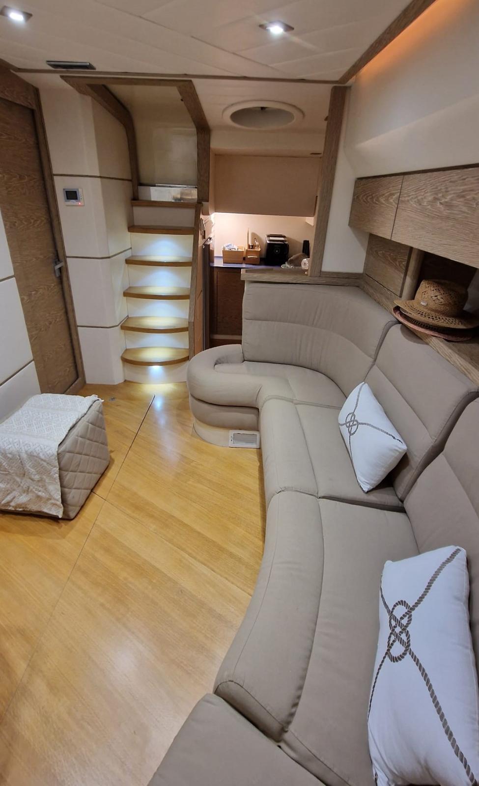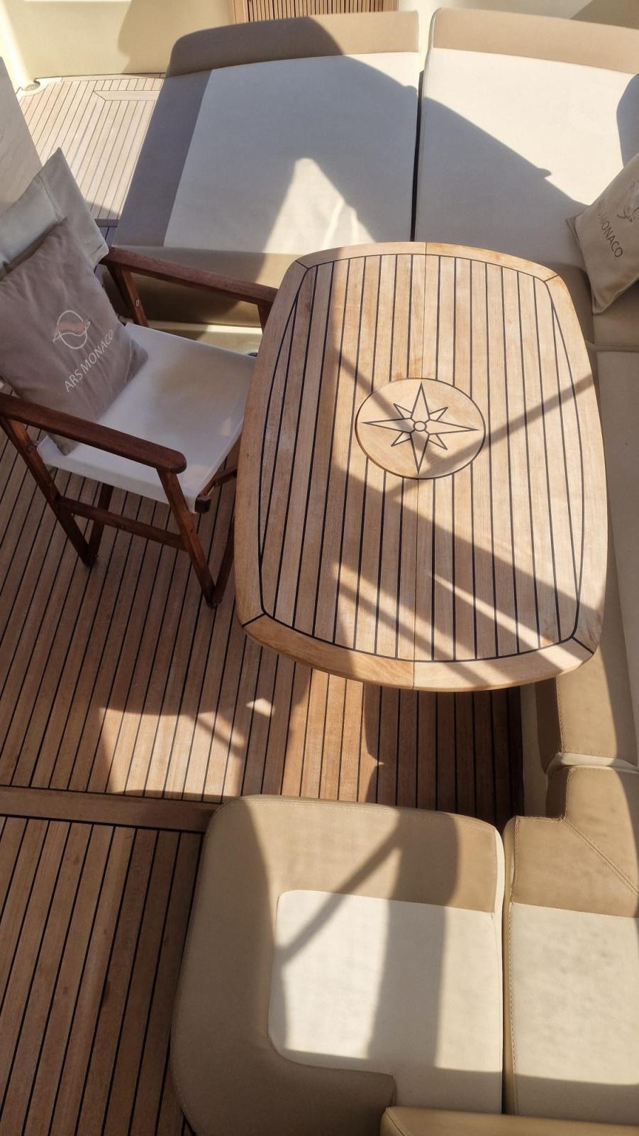 Nouveau mobilier intérieur en bois et cuir - Nouveaux rideaux et rembourrage intérieur - Nouveau pont en teck - Cockpit révisé avec création d’un canapé / terrasse - Nouveaux coussins extérieurs