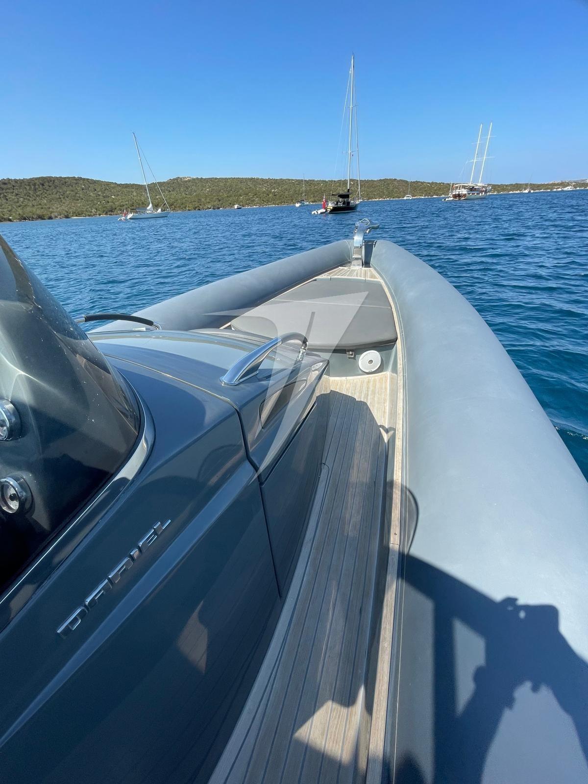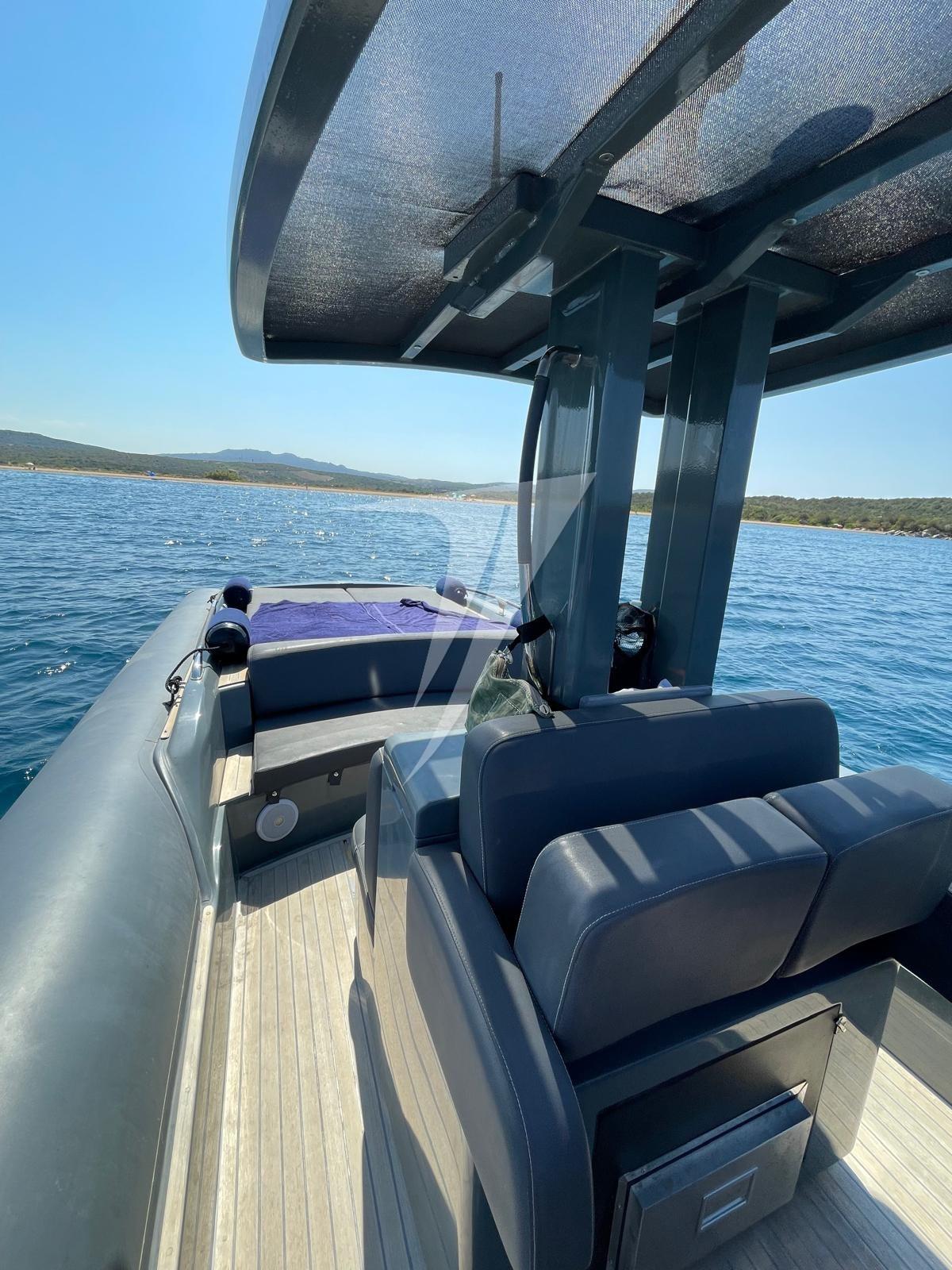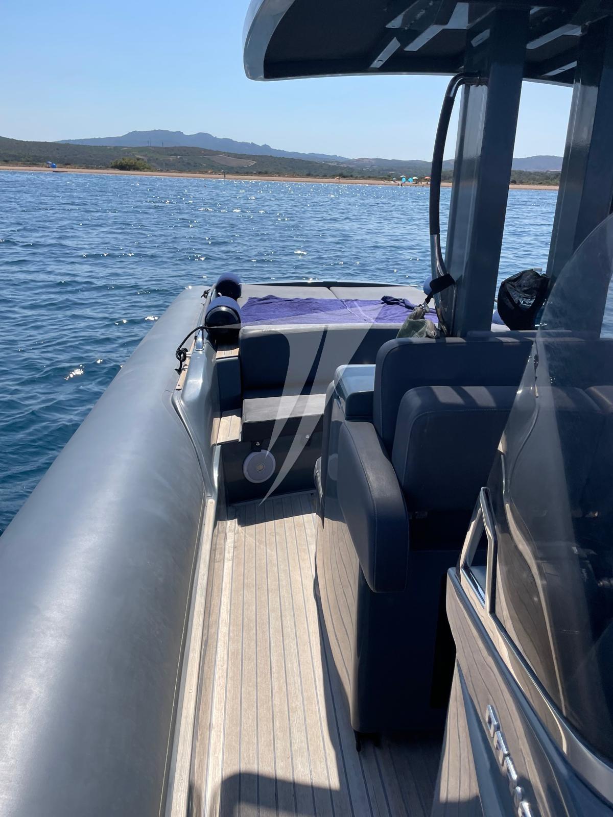 Semi-rigide semi-rigide de luxe RIB de 12,8 mètres, conçu pour de hautes performances et de confort, idéal comme navire de soutien à superyachts ou pour des croisières de jour.