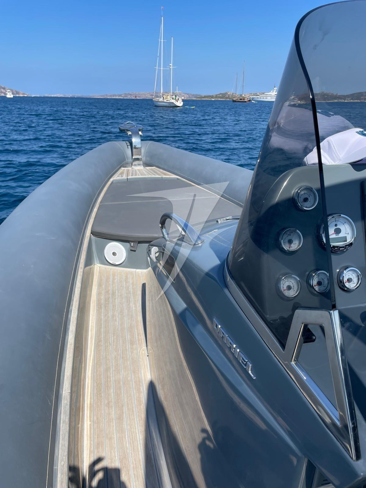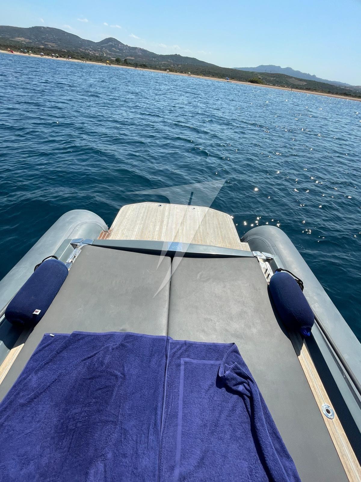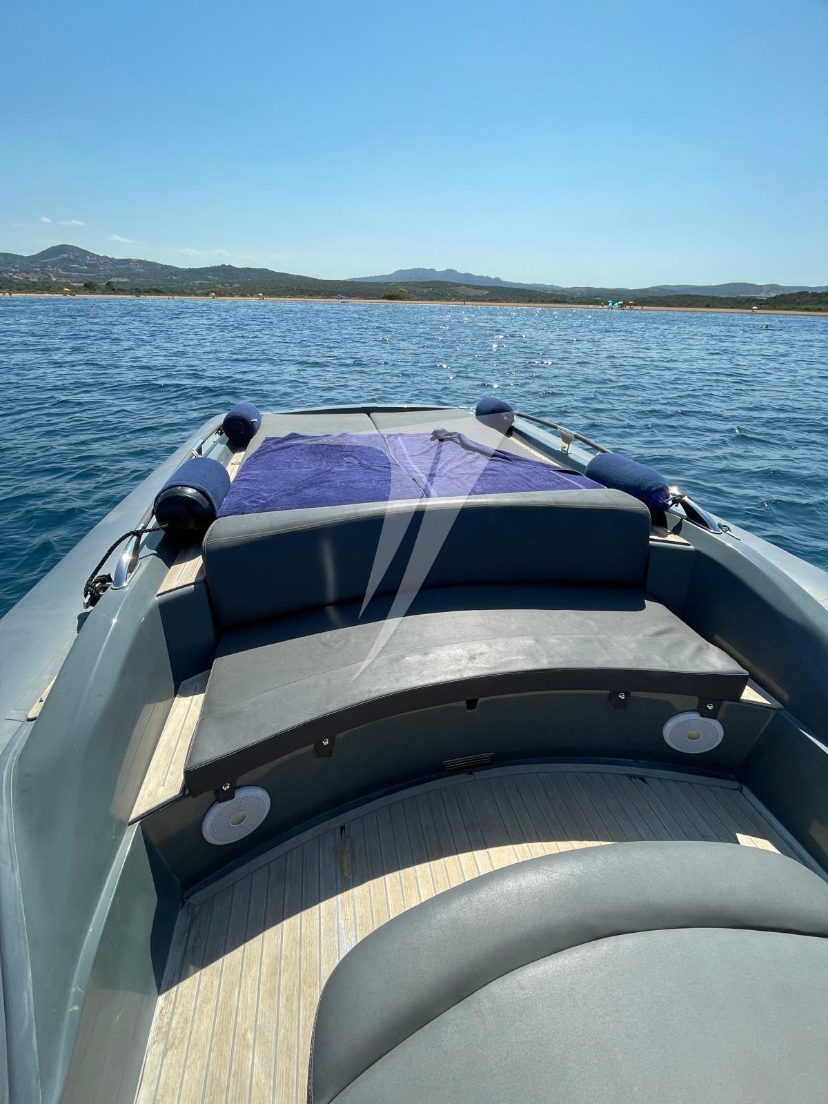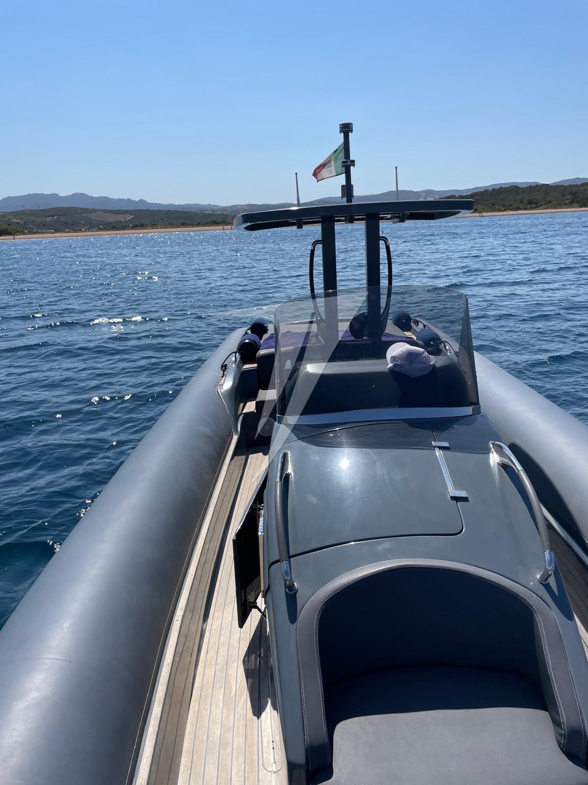 Semi-rigide semi-rigide de luxe RIB de 12,8 mètres, conçu pour de hautes performances et de confort, idéal comme navire de soutien à superyachts ou pour des croisières de jour.