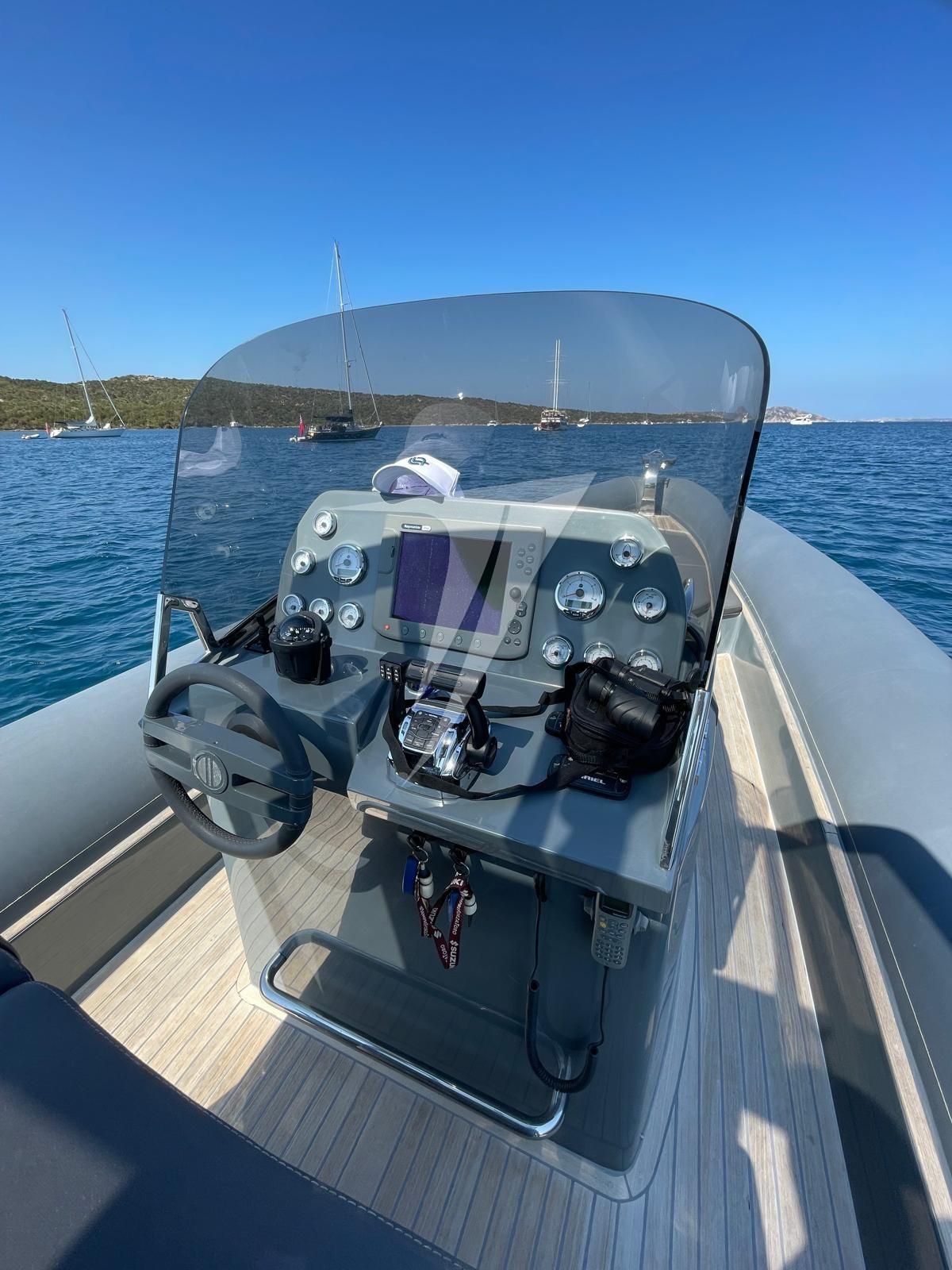 Ancre (+ catena), Eau sous pression, Passavant en teck, Douche de cockpit, Éclairage de courtoisie, Spots sous-marins, Cockpit en teck, Prise de quai, Echelle de bain (elettrica), Corne, T-Top, Pont en teck.