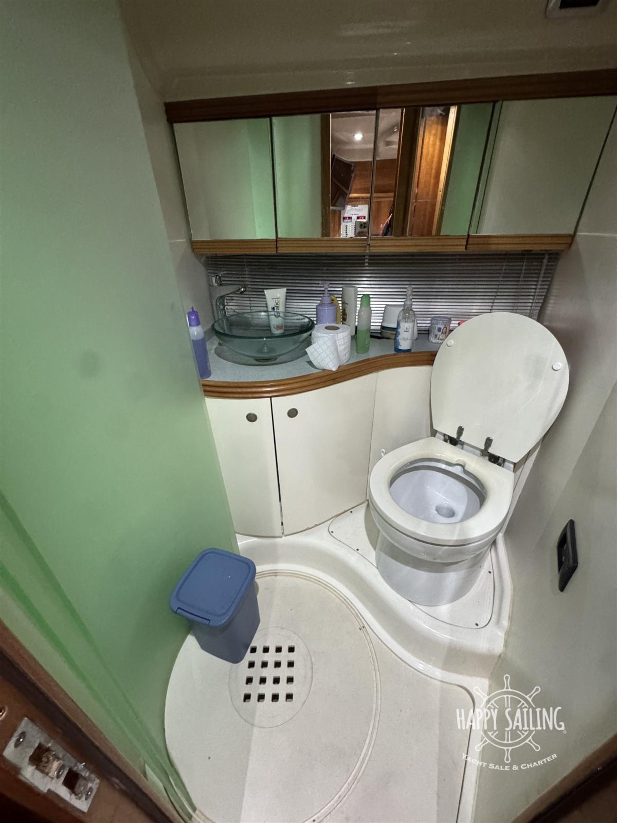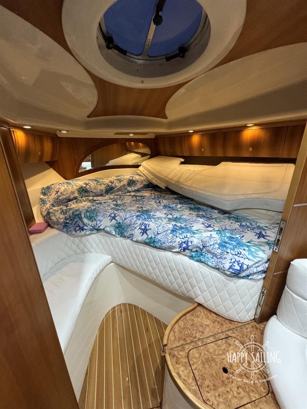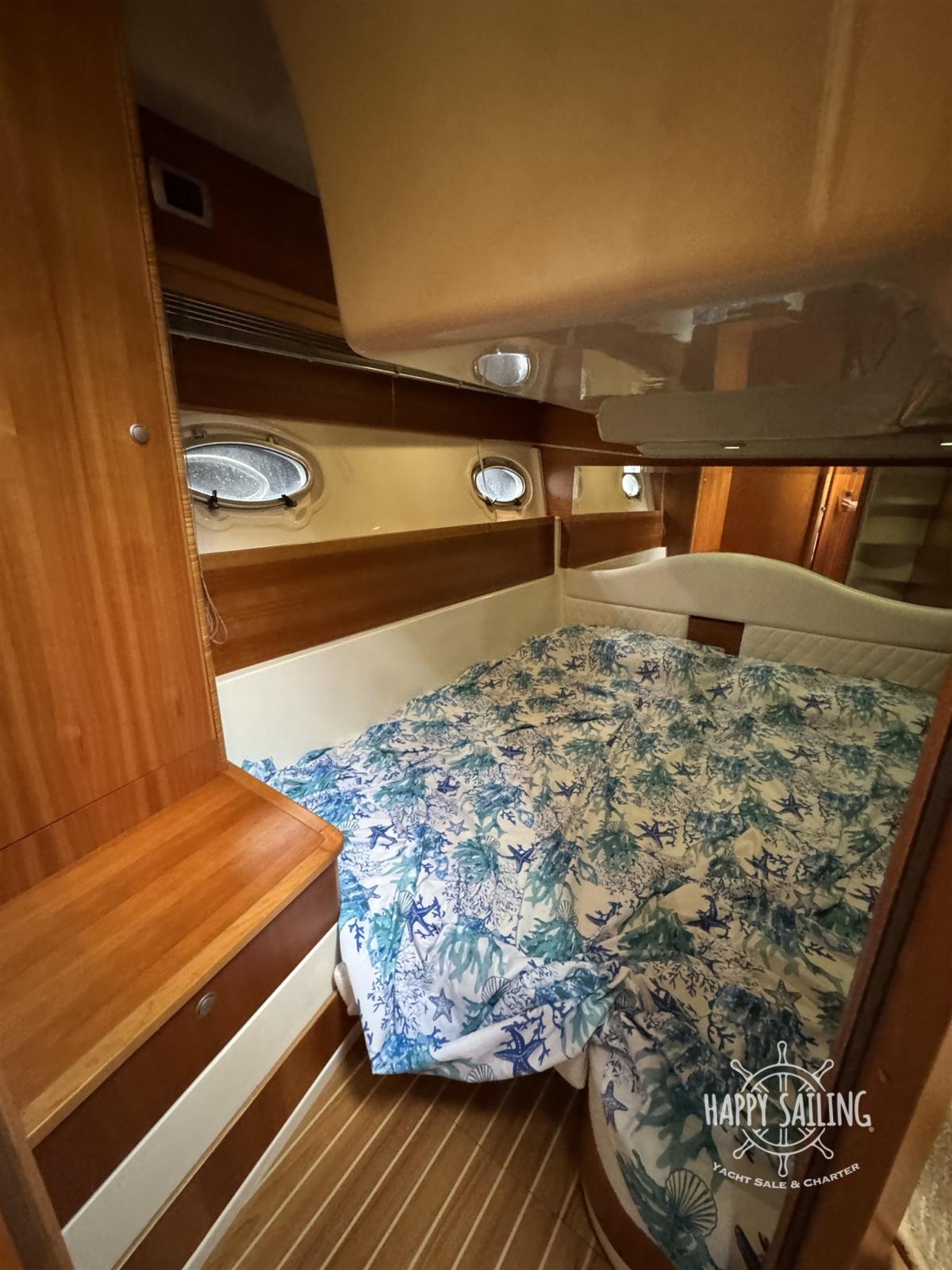 Eau sous pression, Couleur spéciale (Grigio metallizzato), Douche de cockpit, Flaps hydrauliques, Garage à annexe, Lavabo dans le cockpit, Défenses, Passerelle, Plateforme arrière, Pompe de cale automatique, Cockpit en teck, Prise de quai, Onduleur, Rollbar, Guindeau électrique, Echelle de bain, table de cockpit.
