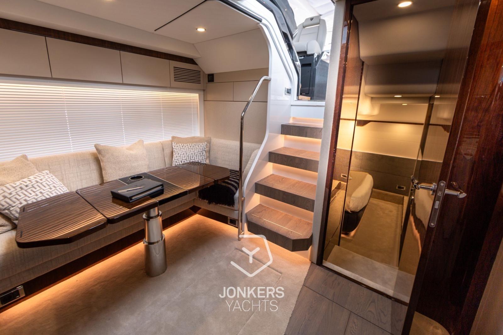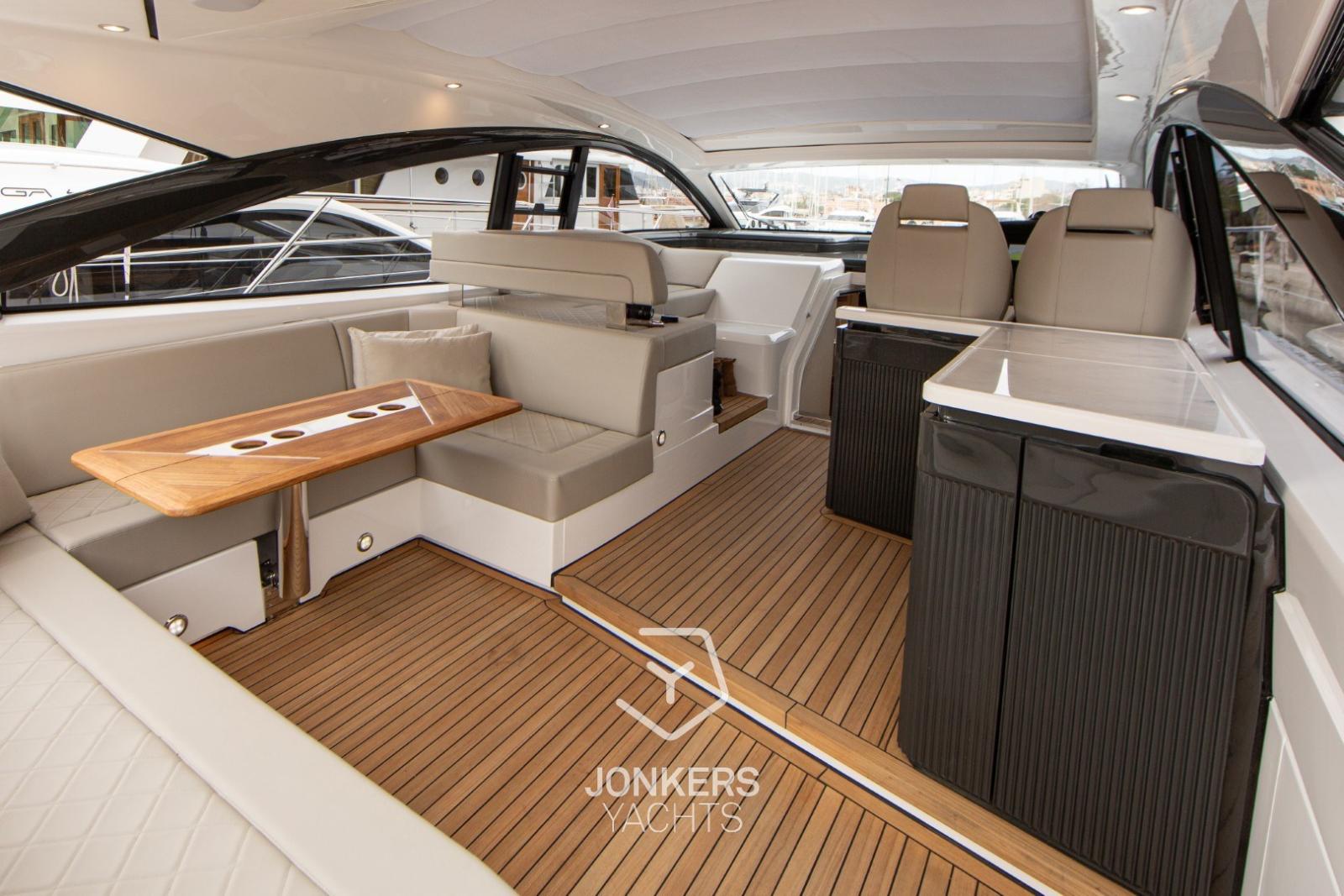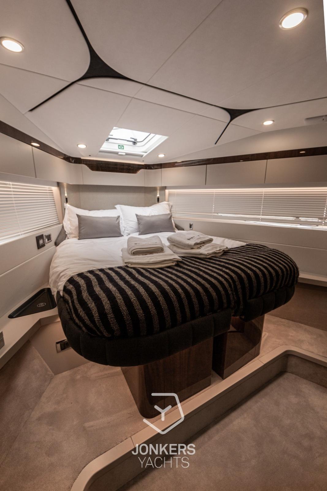 L’intérieur s’inspire des derniers Squadron 58 et Targa 40, mêlant harmonieusement design contemporain et décoration élégante pour créer des espaces magnifiquement équilibrés, conçus pour le confort et le plaisir à bord.