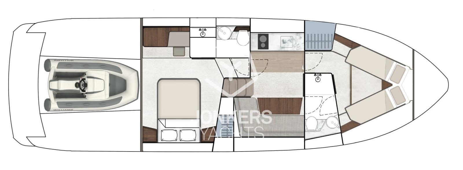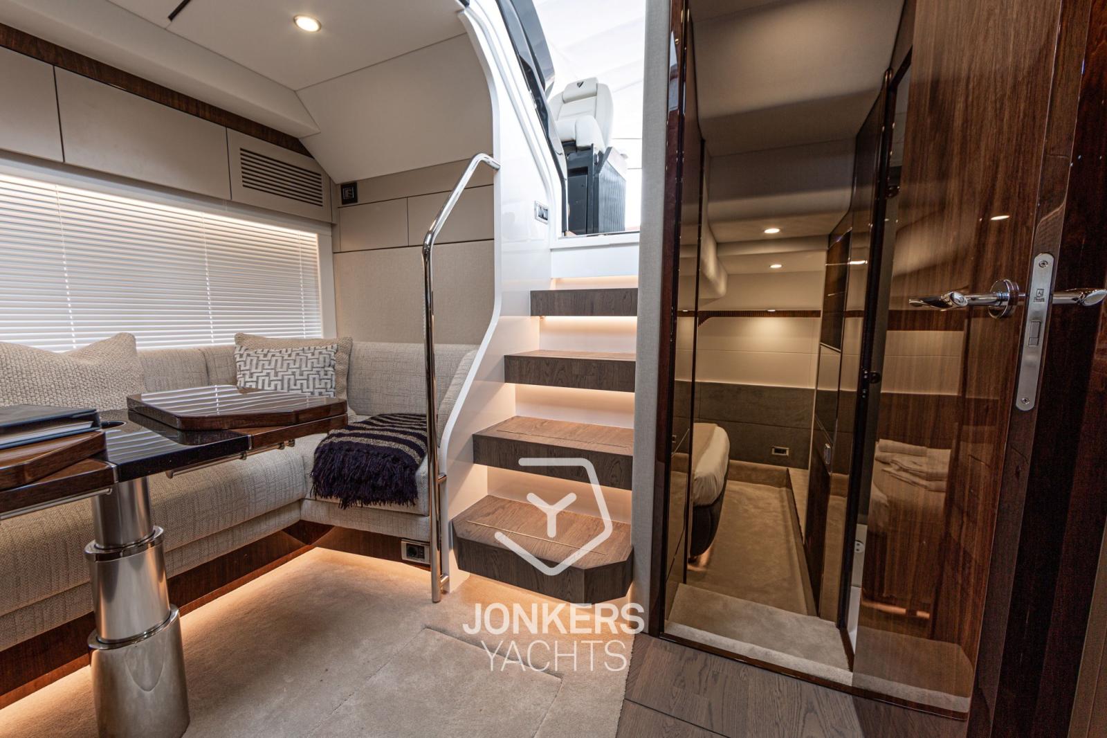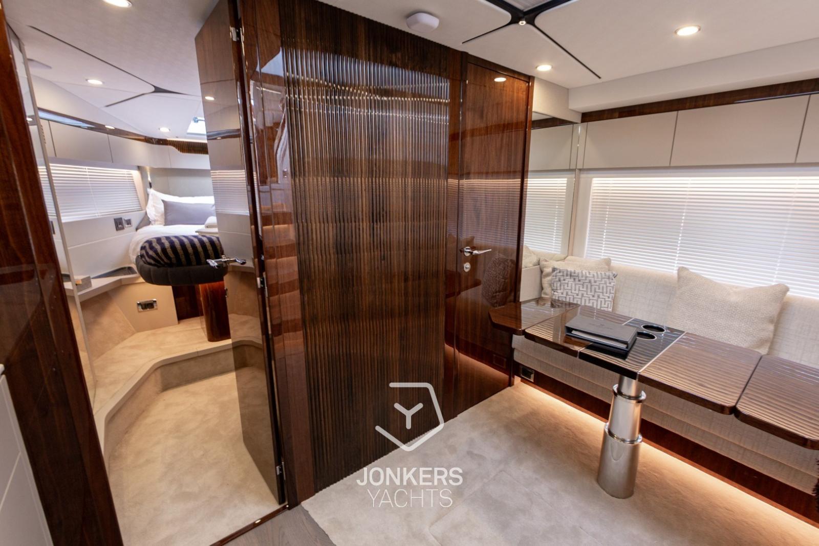 L’intérieur s’inspire des derniers Squadron 58 et Targa 40, mêlant harmonieusement design contemporain et décoration élégante pour créer des espaces magnifiquement équilibrés, conçus pour le confort et le plaisir à bord.