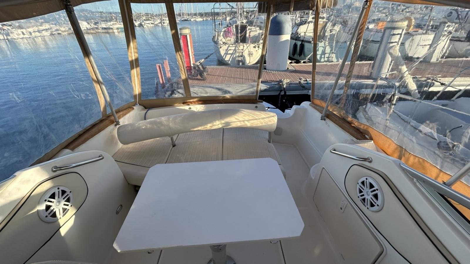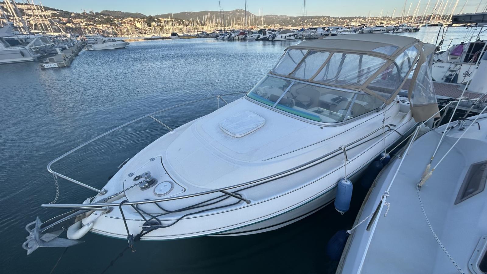 Cabine avant, 4 couchages, Réfrigérateur, Bain de soleil arrière, Taud de soleil, Bimini cabriolet, Taud de console, Guindeau électrique, GPS GARMIN, Sondeur GARMIN, Prise de quai, Batteries moteur + service 110Ah