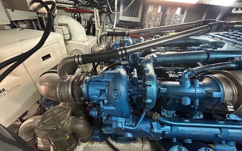 Sur le plan technique, la motorisation MAN associée à une transmission par lignes d’arbres assure fiabilité et rendement. Les échangeurs ont été nettoyés et contrôlés, les arbres d’hélices sont neufs, et l’ensemble bénéficie d’un suivi sérieux. Deux groupes électrogènes, une gestion d’énergie intégrée, un convertisseur, deux chargeurs de batteries, une climatisation à double compresseur, l'électronique Raymarine HybridTouch AXIOM avec caméra moteur, le pilote automatique, le propulseurs d’étrave et de poupe viennent compléter un équipement particulièrement complet.