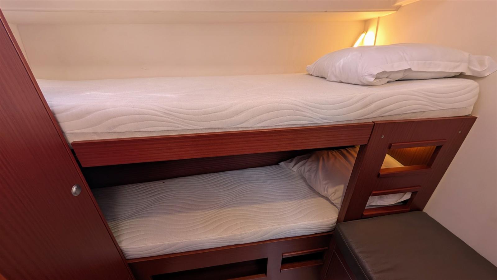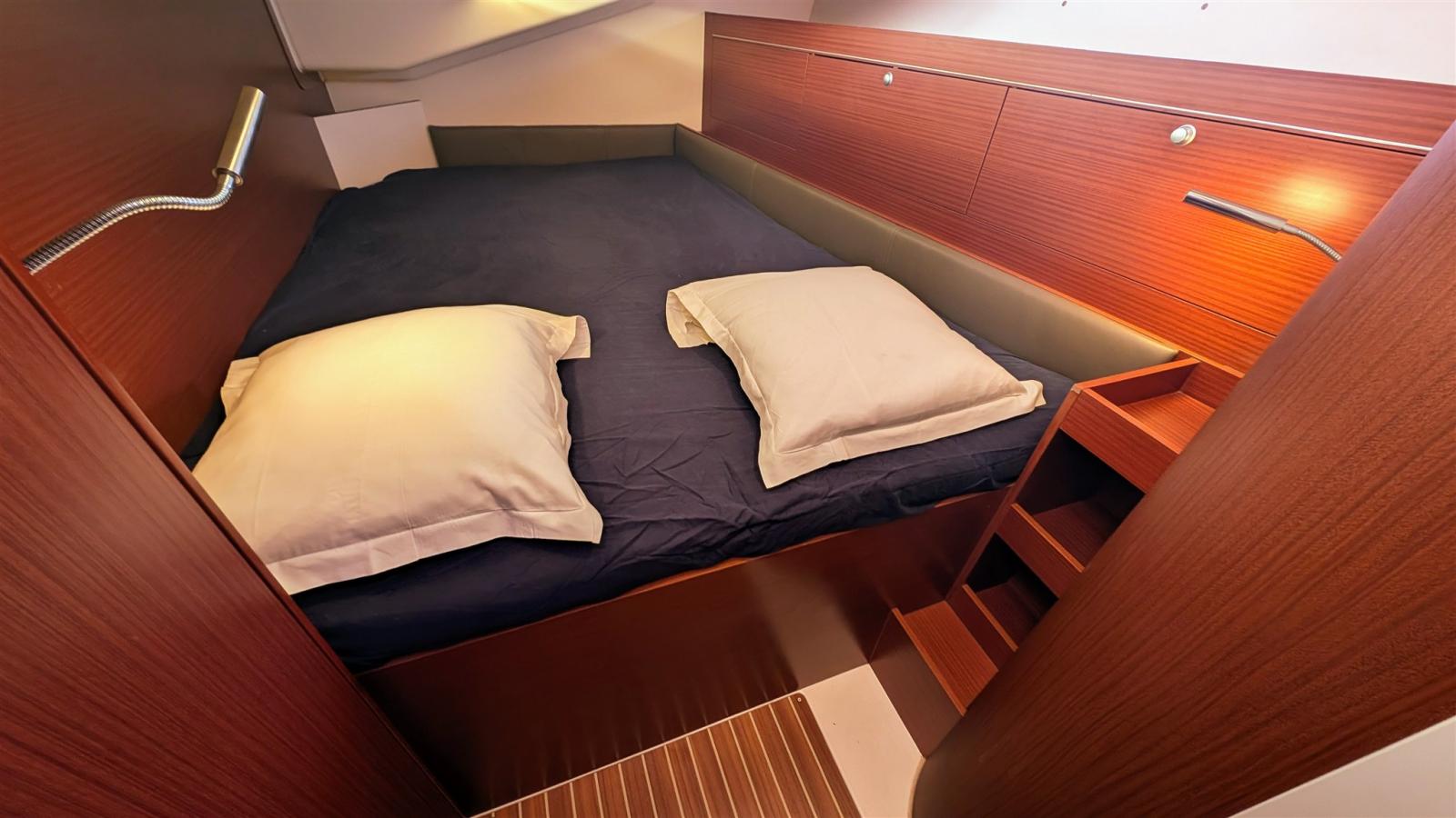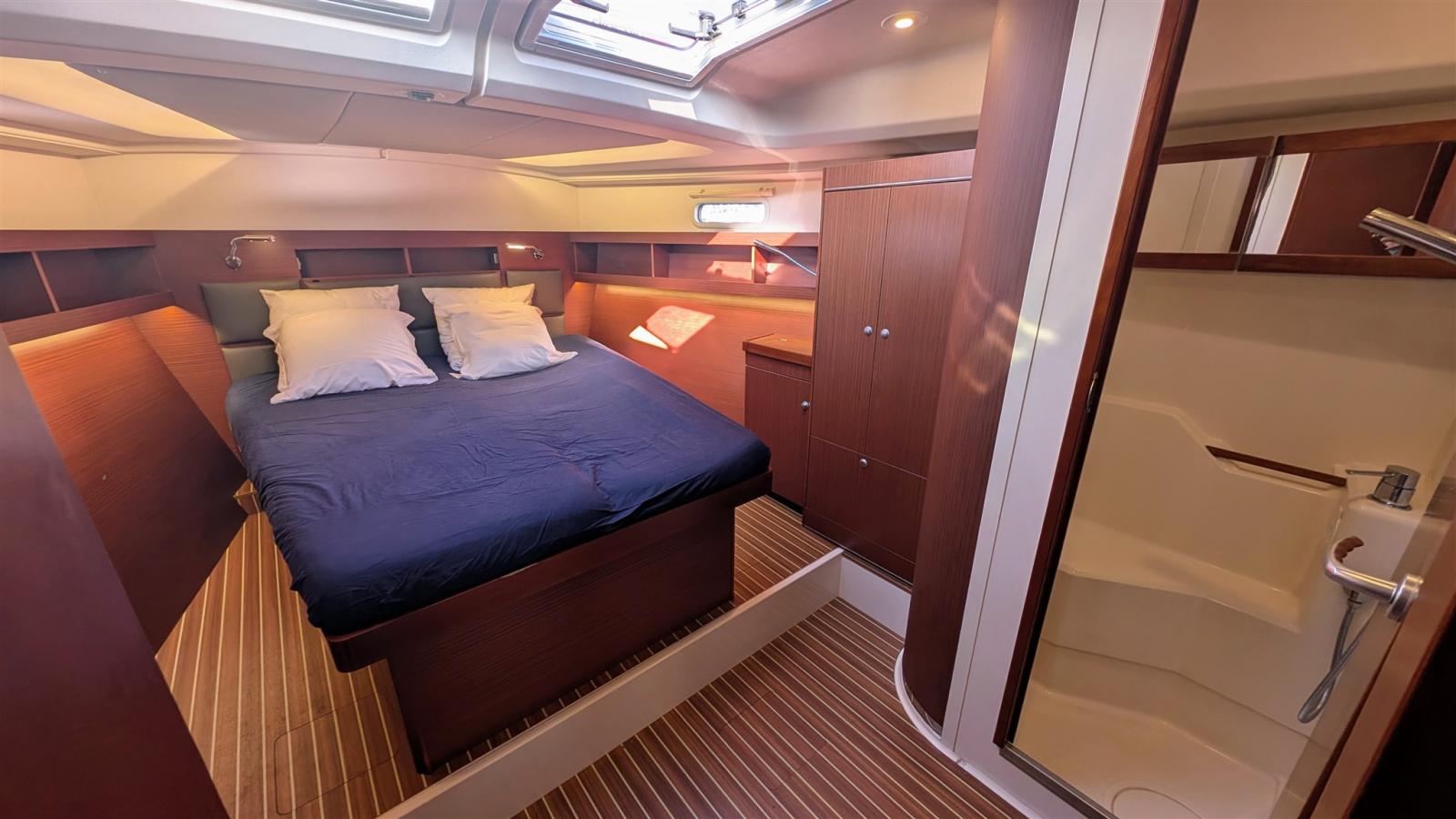 Avec ses 15,30 m de long hors tout et 4,75 m de large, ce monocoque moderne offre une habitabilité exceptionnelle, modulable en plusieurs configurations de cabines et salles d’eau, tout en privilégiant une navigation sûre et agréable.