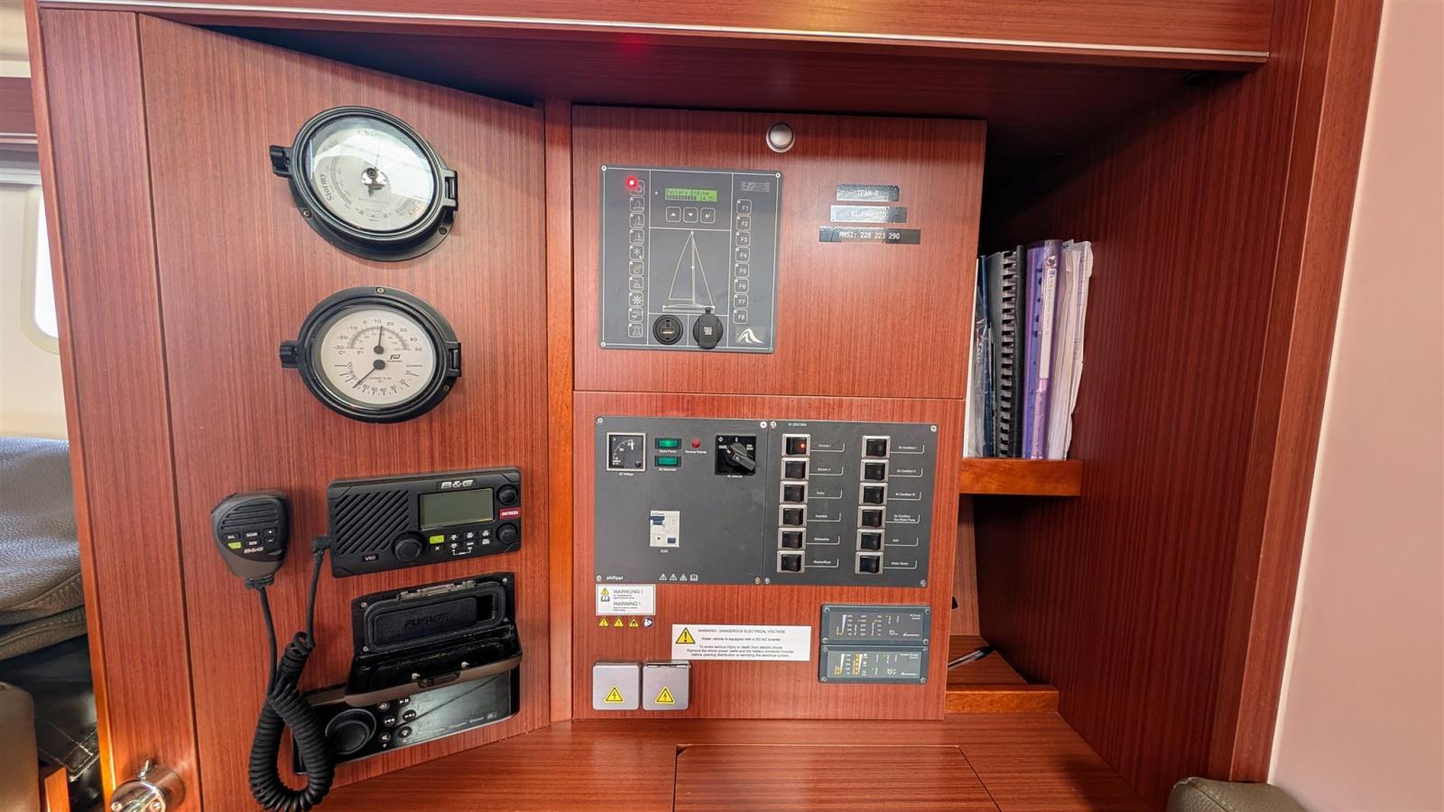 AIS, Indicateur d'angle de barre, Antenne radar, Moniteur (B&G Triton multifunzione a colori incl. trasduttore (velocità, prof, temp)), DSC VHF, GPS (B&G), Cartes et guides, Lecteur de cartes (B&G X 2), 2 Plotter GPS, Radio VHF (B&G), Sondeur (B&G).