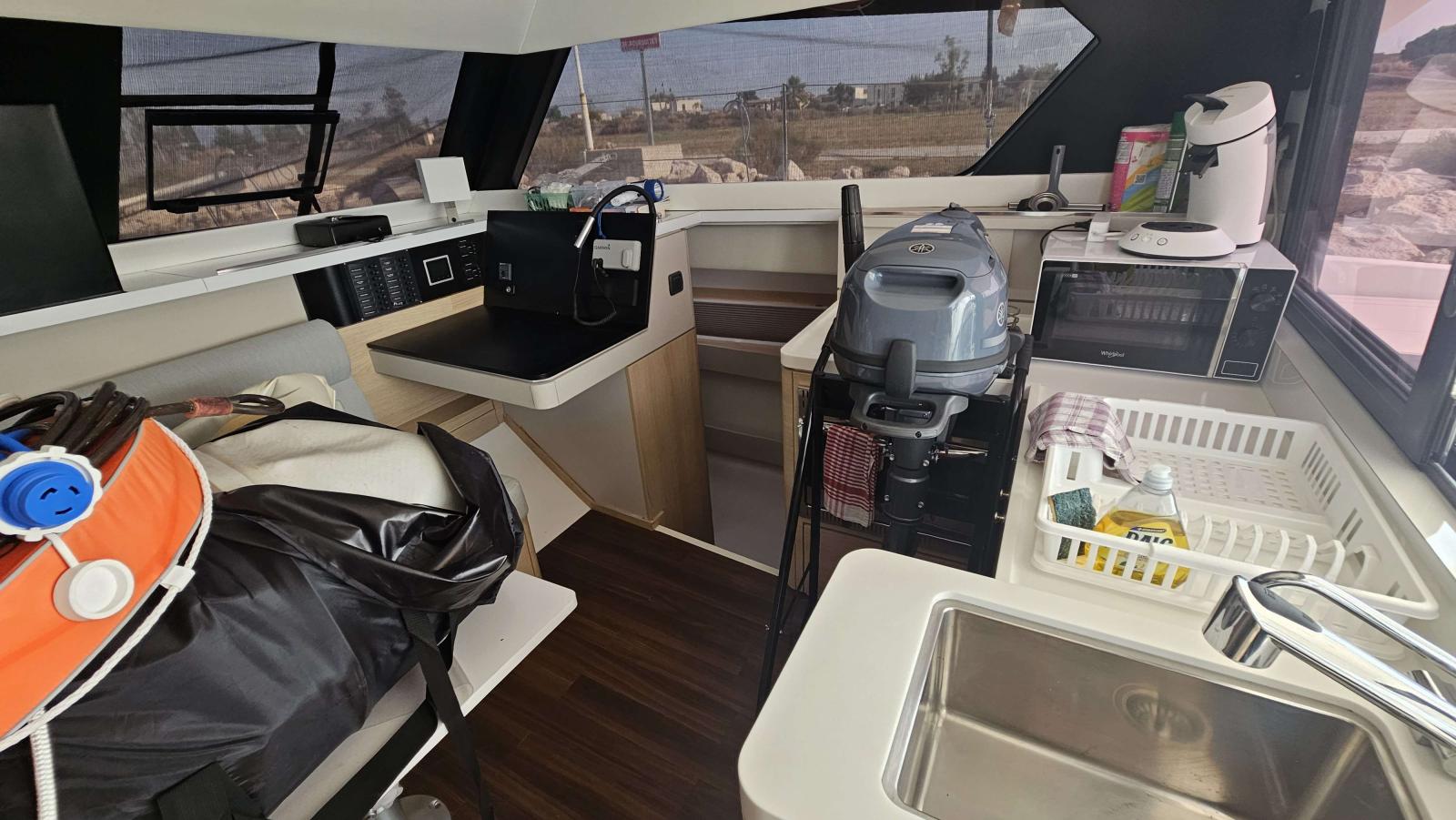 Équipé de deux moteurs Yanmar 3YM30AE de 30 CV, ce catamaran bénéficie d'une motorisation fiable et éprouvée, parfaitement adaptée à sa taille.