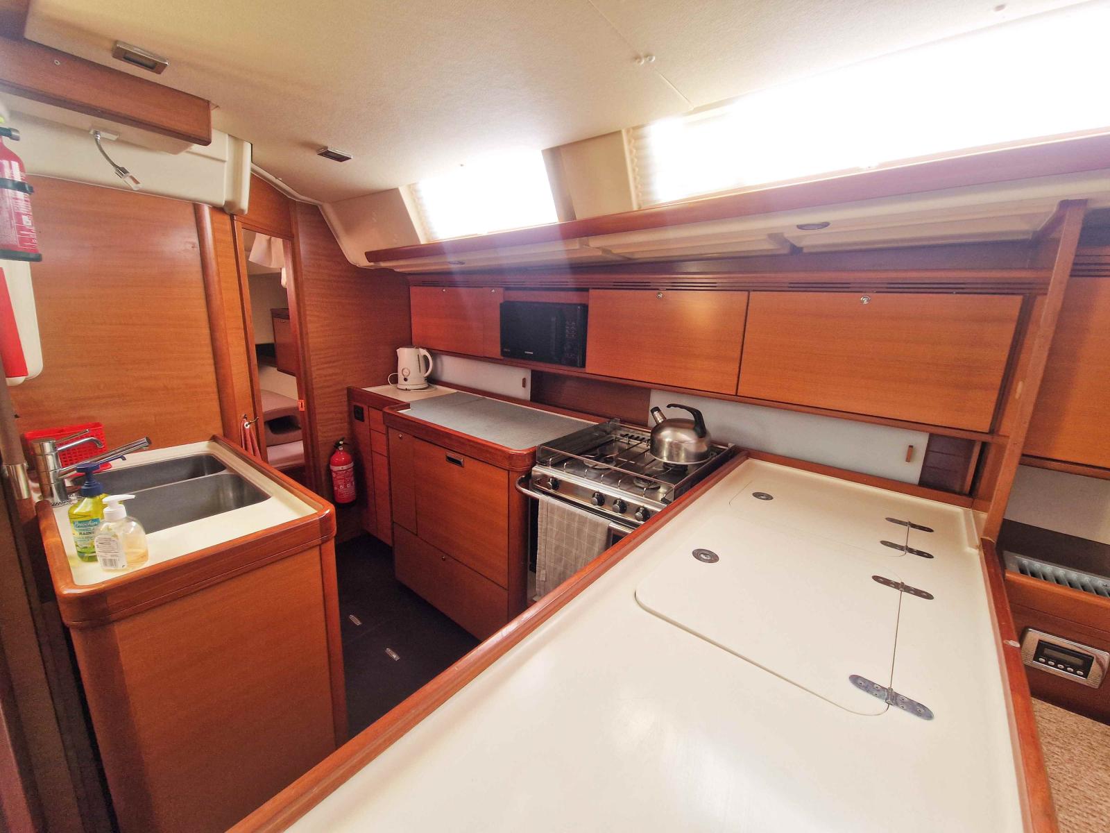 Propulsé par un moteur Volvo D2-75 de 75 CV avec transmission Sail Drive, ce voilier combine fiabilité et efficacité. Avec une vitesse de croisière de 7 nœuds et une consommation modérée de 2 litres/heure, il se révèle économique pour les longues traversées.
