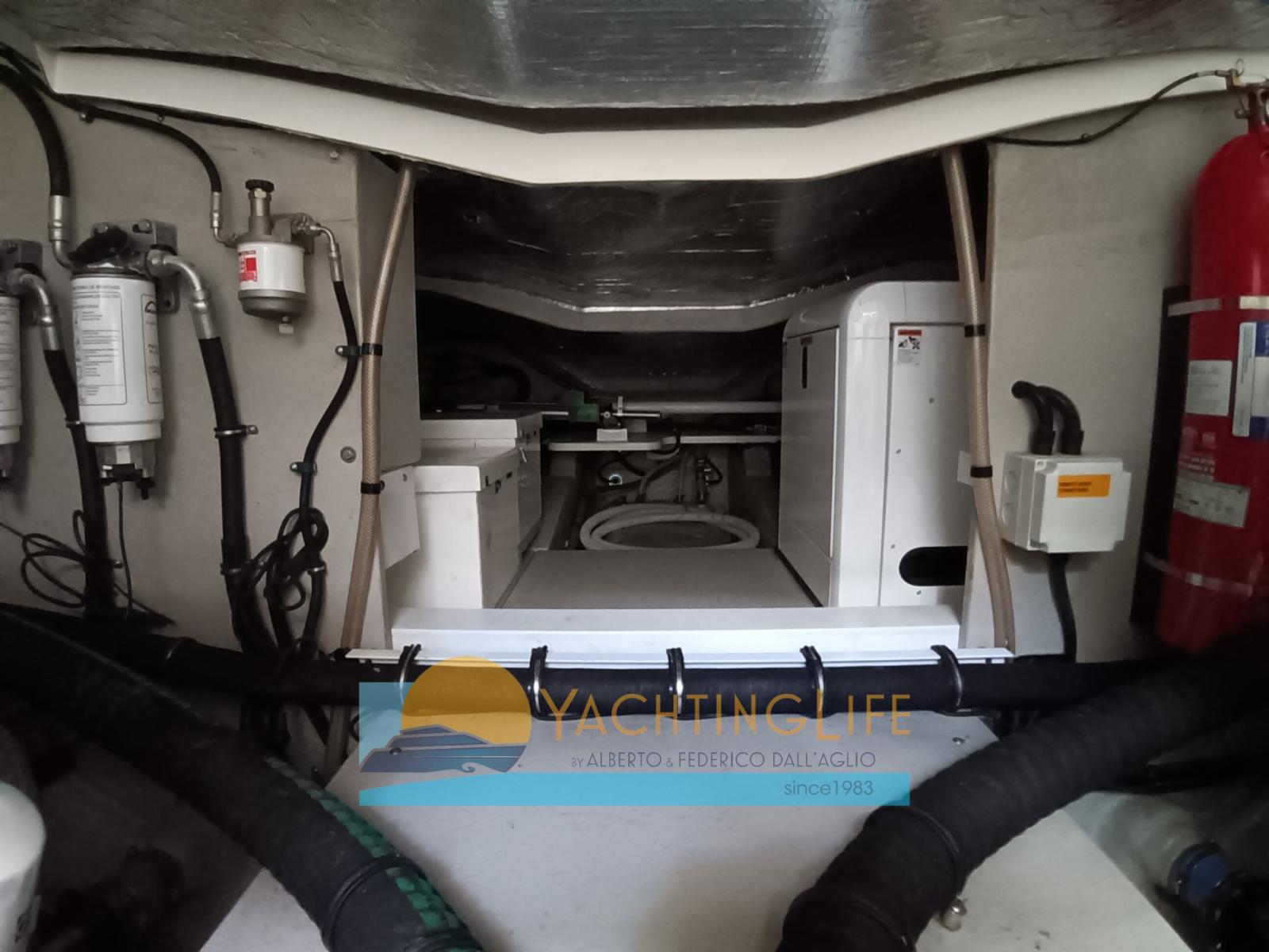 Alarme moteur, Alarme de pompe de cale, Ouverture du compartiment moteur électrique, Eau sous pression, 10 Batteries (2025), Douche de cockpit, Flaps hydrauliques, Garage à annexe, Hard top, Extincteur(s) fixe(s), Indicateurs de flaps, Éclairage de courtoisie, Passerelle (idraulica), Plateforme arrière, Pompe de cale automatique, Cockpit en teck, Prise de quai, Guindeau électrique, Echelle de bain, table de cockpit, Corne, Winch électrique arrière.
