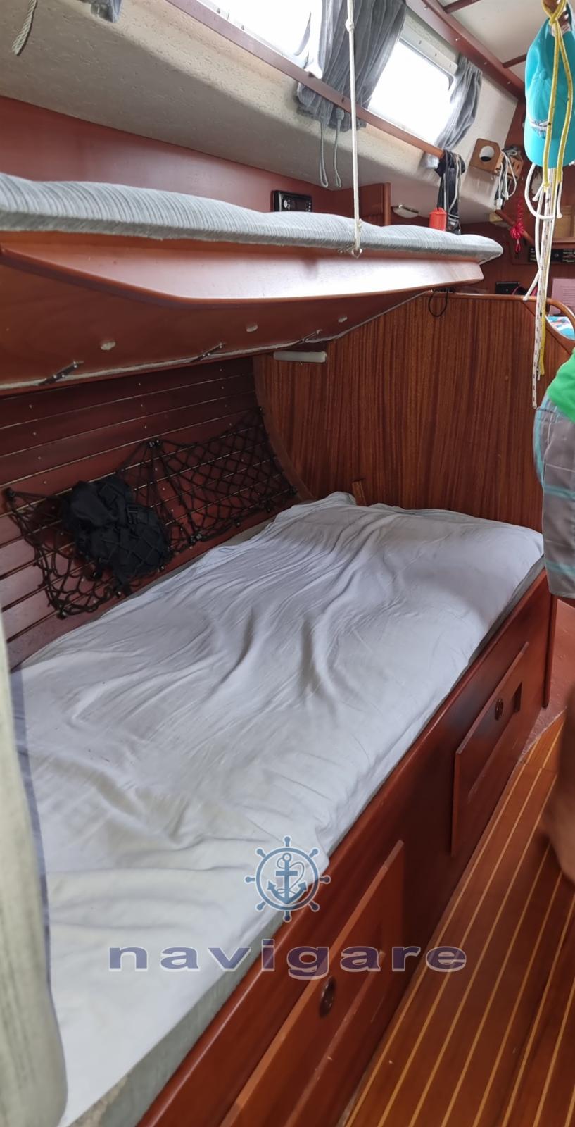 venant du lac de Constance,. Voiles allongées : Grand avec système de lazy jack, génois, génois tempête, grand génois (nouveau), deux gennakers. Volvo Penta 3 cylindres diesel, annexe AB Honda, système VHF, treuil électrique, grand bimini, pilote automatique