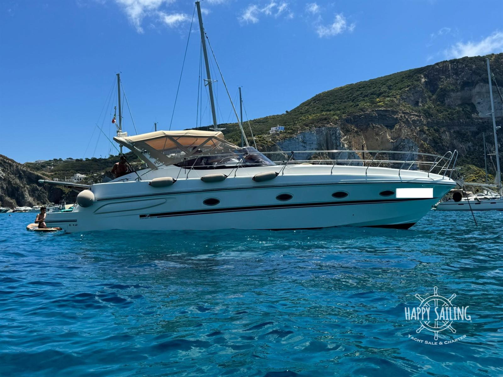 Alarme moteur, Eau sous pression, Douche de cockpit, Flaps électriques, Éclairage de courtoisie, Passerelle, Plateforme arrière, Cockpit en teck, table de cockpit.