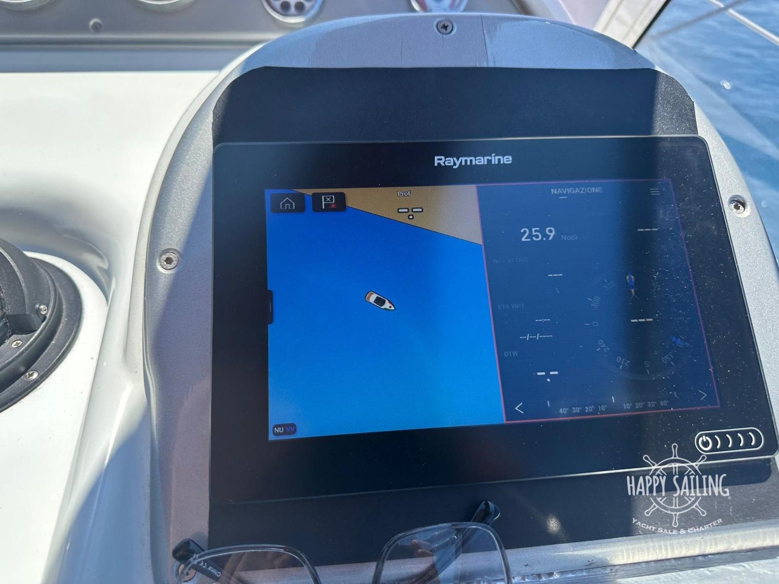 Indicateur d'angle de barre, Ordinateur fixe de bord, Moniteur, Plotter GPS, Siège copilote.