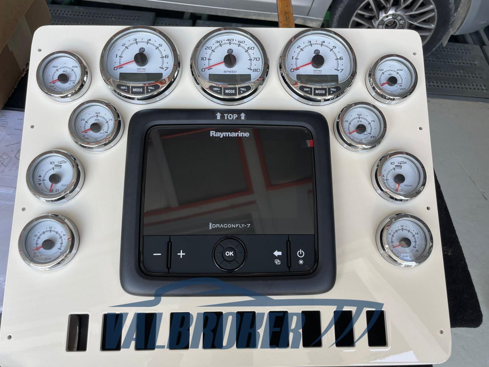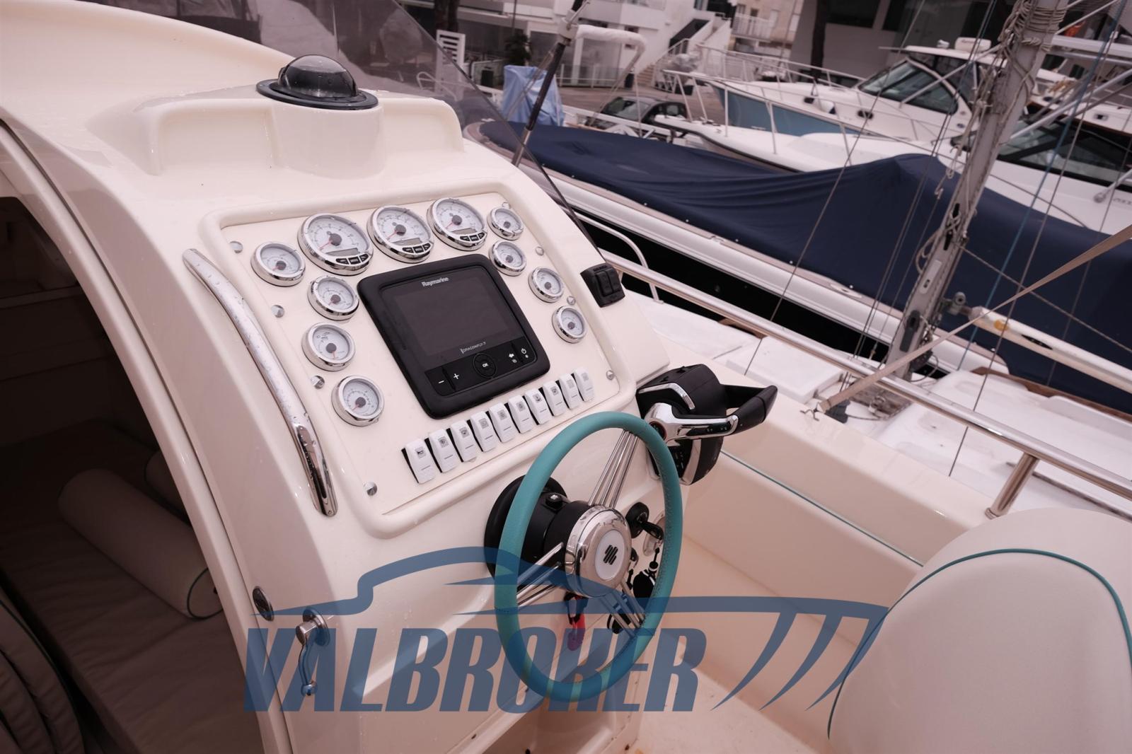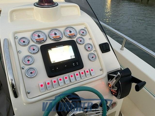 Walkaround de 1998 mais entièrement réaménagé en 2023 : nouvelle timonerie hydraulique Ultraflex, sellerie neuve, système électrique, sonorisation Fusion (factures disponibles). Unique, inaccessible. Très performant. Nouveaux moteurs 2x350 Mercruiser MCM 6.2 L avec garantie 2023. Il atteint un maximum de 50 nœuds. Tiffany color.BATEAU NON PLAQUÉ.
