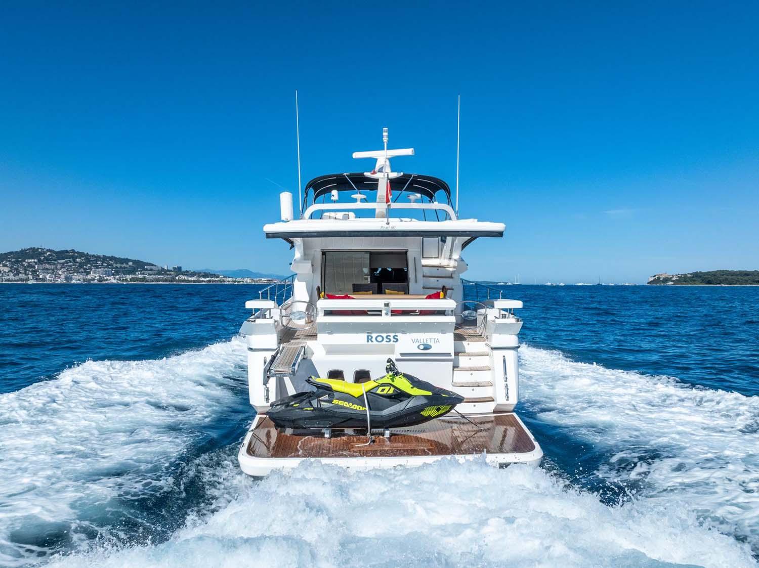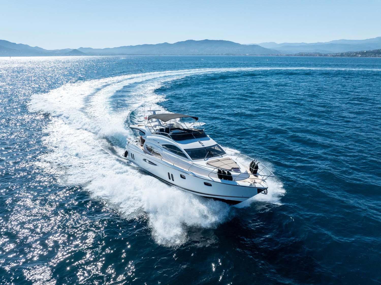 Ce yacht à moteur de luxe avec cabine arrière offre un espace remarquable, comprenant quatre cabines somptueuses et des performances exaltantes. Sa puissance provient de deux moteurs Volvo Penta, garantissant une propulsion souple et une navigation confortable.