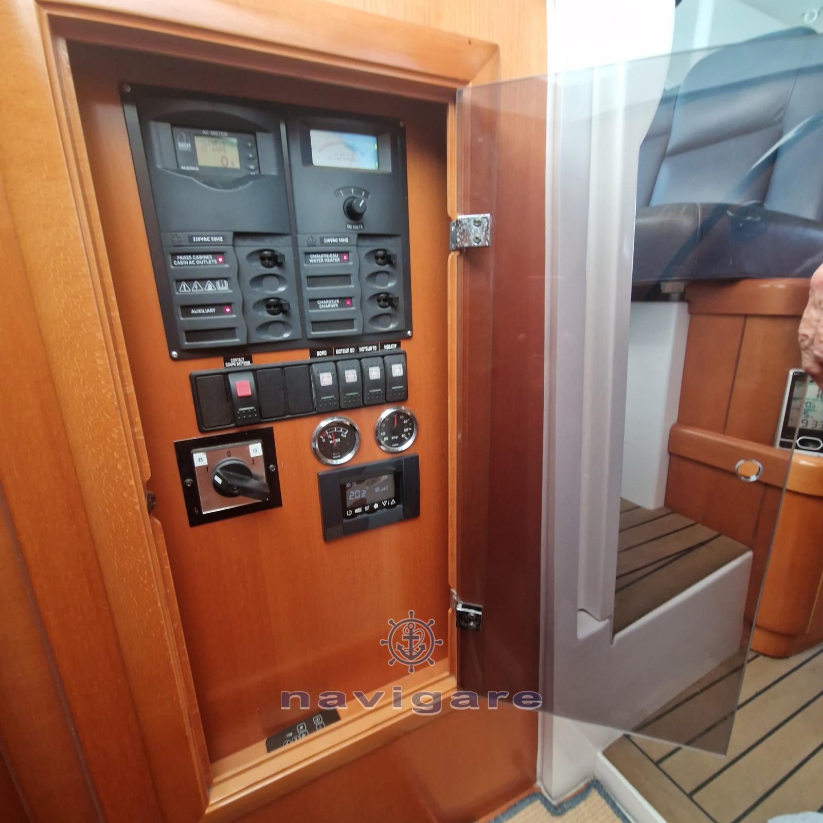 Commande électrique (Smart Remote Controller, per controllo navigazione e autopilota), Sondeur pêche (Raymarine), GPS (Raymarine), Pilote automatique (ST6001 Raymarine), 2 Plotter GPS (Raymarine (E120 postazione interna, E80 postazione fly)), Radar (Raymarine), 2 Radio VHF (Raymarine).