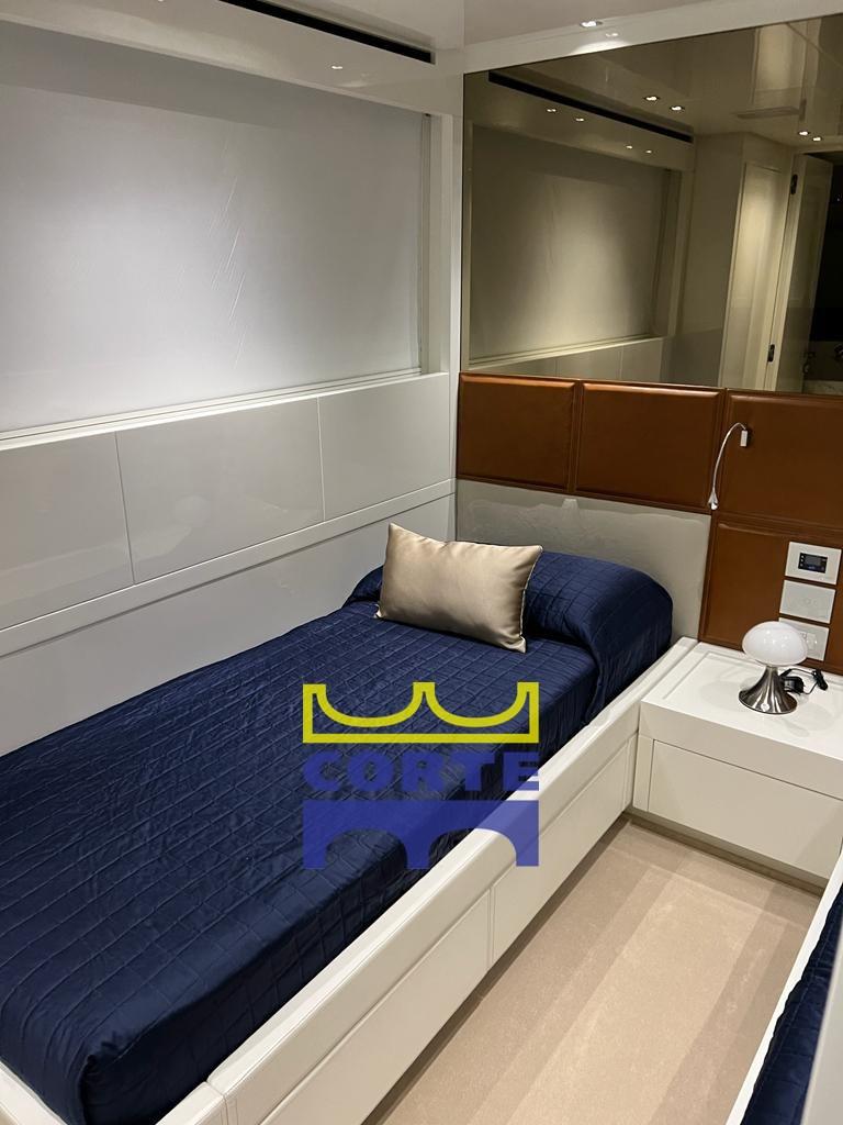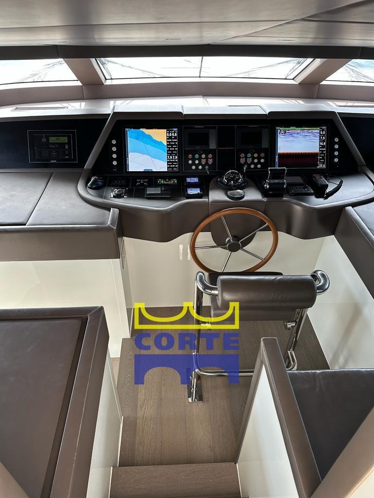 Troisième station de contrôle, stérilisateur d’eau douce, double pompe à eau pour la climatisation, télévision en circuit fermé, Wi.Fi Internet, Bose Hi-Fi, cabines invités TV et cabine du capitaine, alfa laval, filtre diesel, rideaux électriques dans le salon, rouleaux occultants électriques pour cabines.