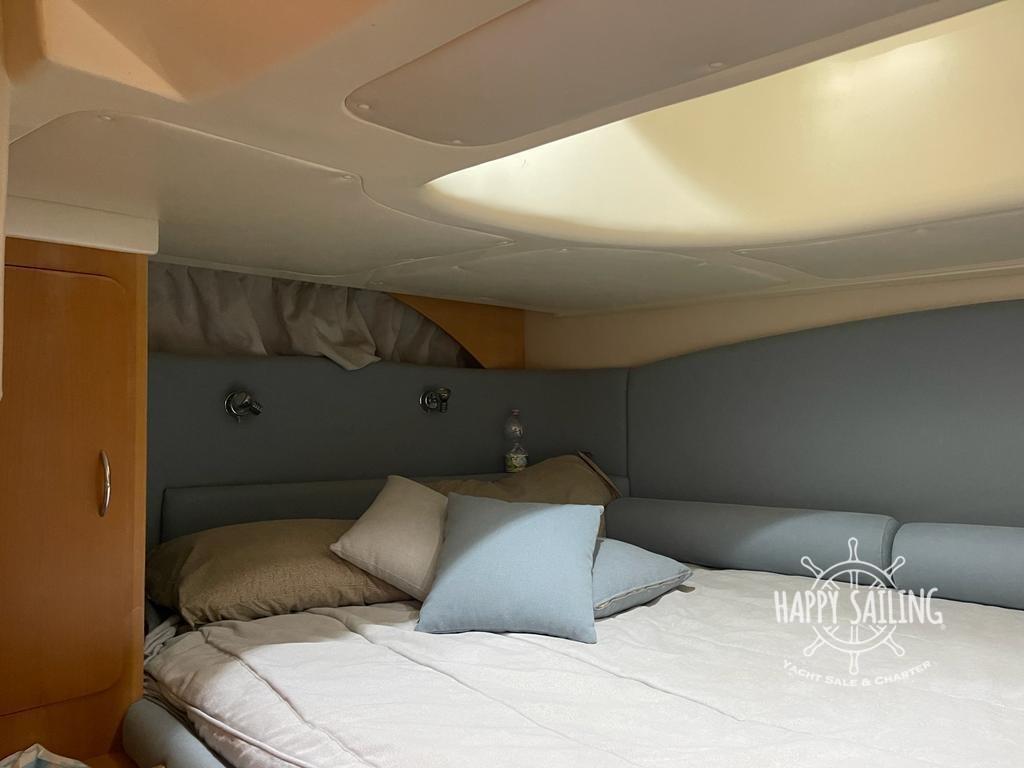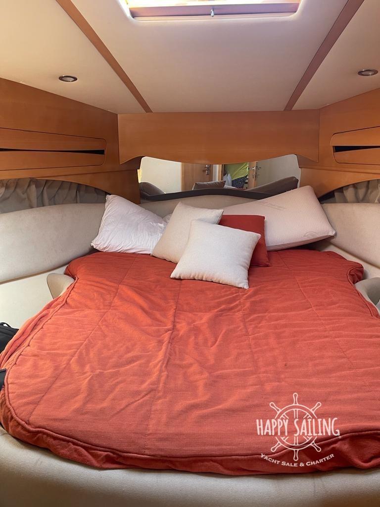 Excellent bateau à toit rigide avec une habitabilité extérieure confortable. Aménagement 2 cabines et 2 salles de bains. Quelques heures de moto, propulsée par un Volvo Penta D6-350. Très bon état général