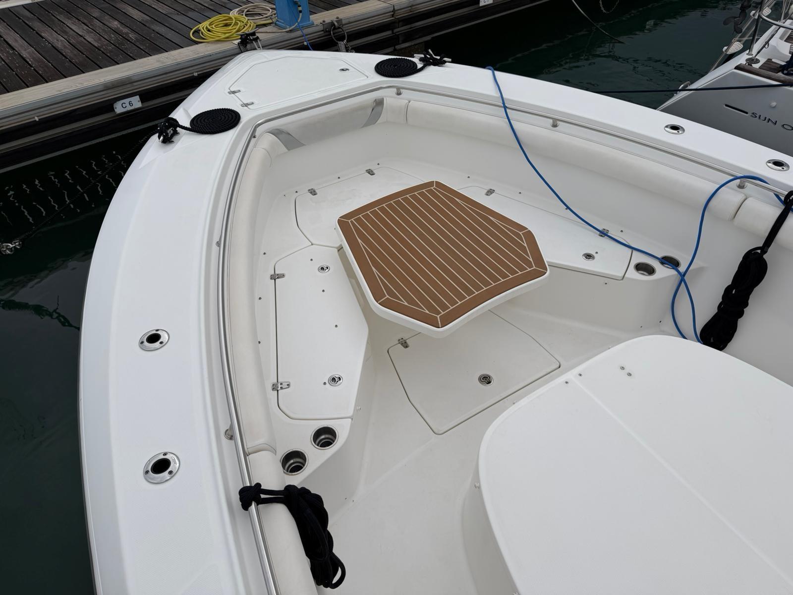 Alarme gaz, Alarme moteur, Alarme de pompe de cale, Alternateur, Eau sous pression, Câble d’alimentation à quai, Douche de cockpit, Phare de poursuite, Flaps électriques, Extincteur(s) fixe(s), Indicateurs de flaps, Lavabo dans le cockpit, Éclairage de courtoisie, Pompe de cale automatique, Pompe de cale manuelle, Pompe de Lavage du Pont, Porte latérale, Prise de quai, Guindeau électrique, Echelle de bain, table de cockpit, Corne, T-Top.