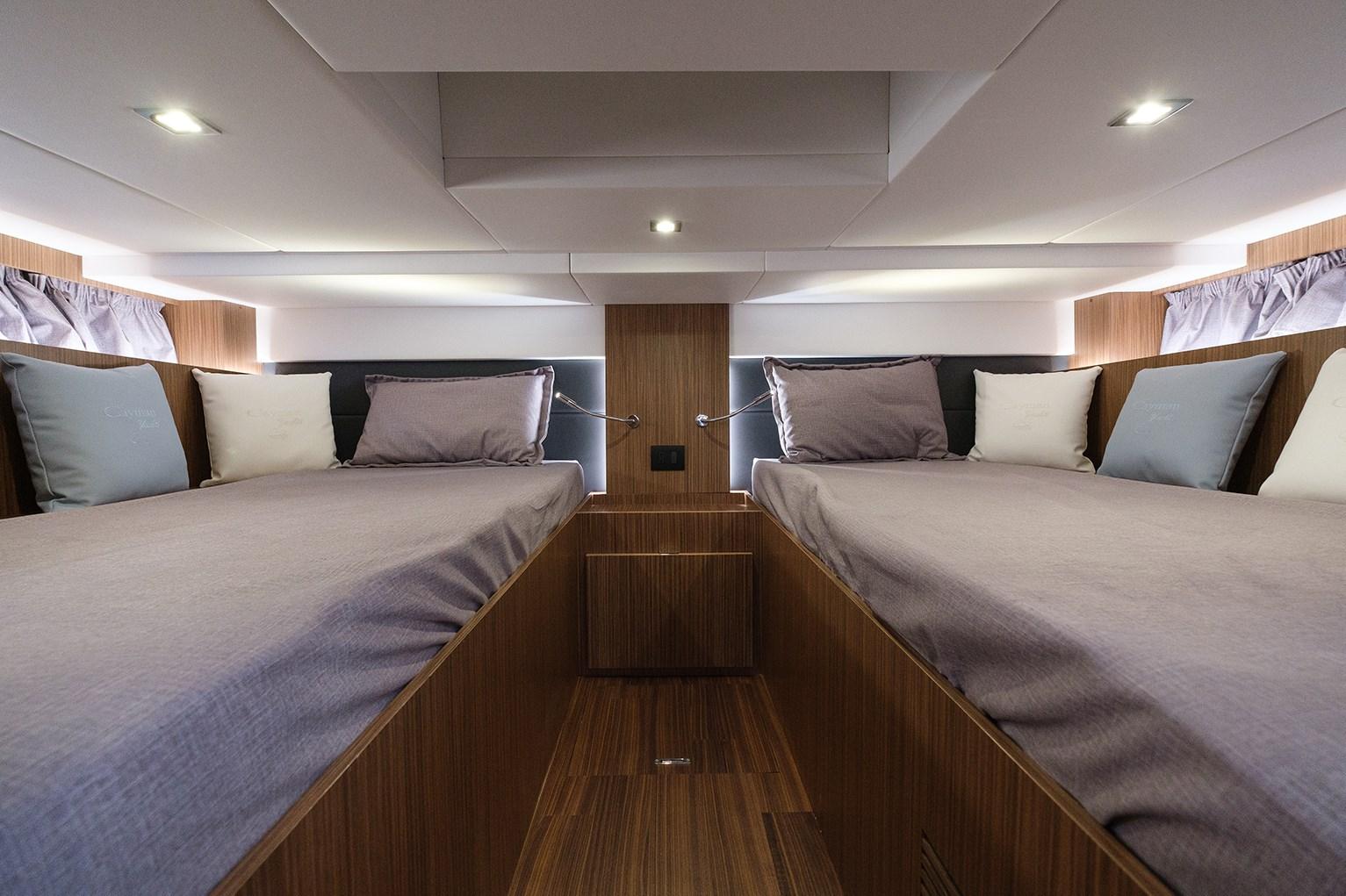 LE CAYMAN YACHTS 400 WA EST ÉQUIPÉ DE 2 CABINES OUVERTES BIEN CONÇUES, OFFRANT DES ESPACES LUMINEUX ET ACCUEILLANTS, IDÉAUX POUR LA DÉTENTE ET L’INTIMITÉ.