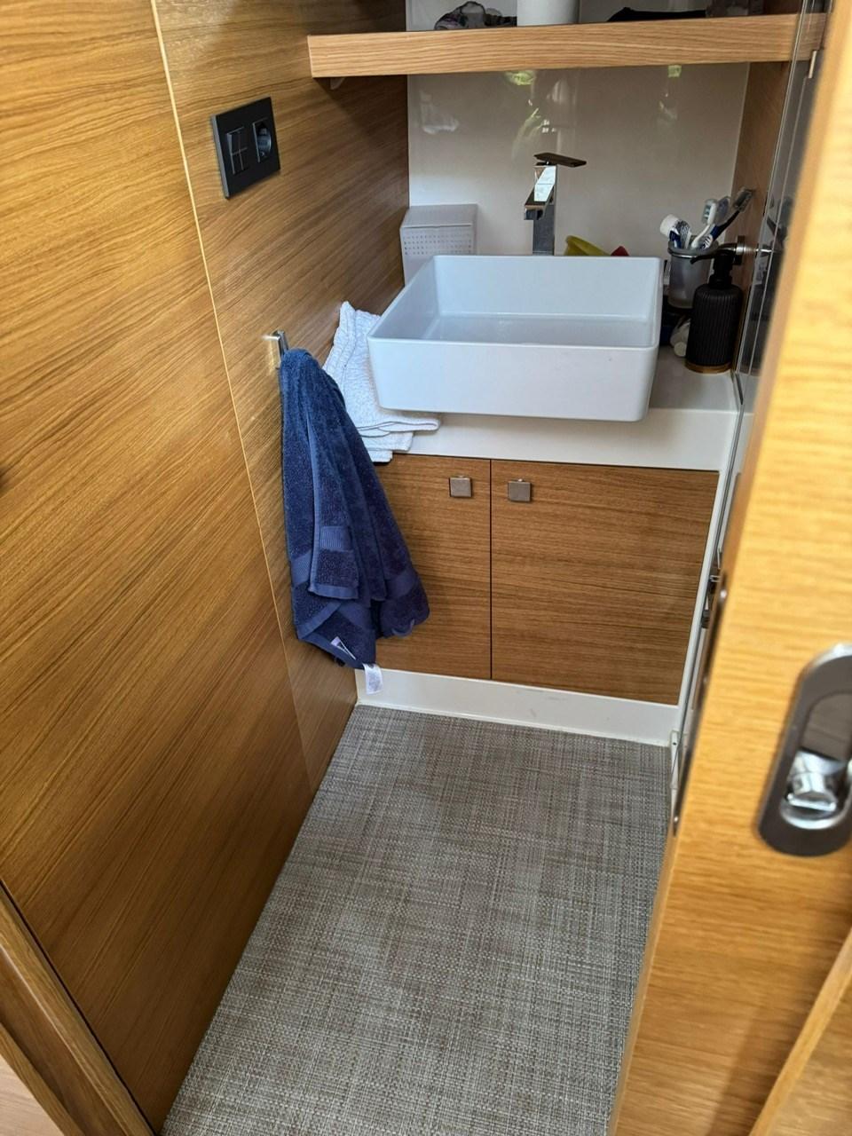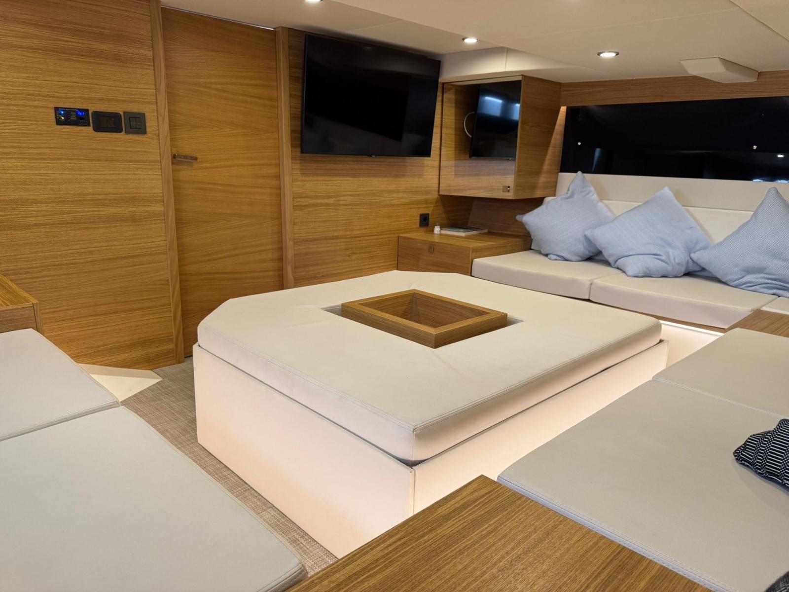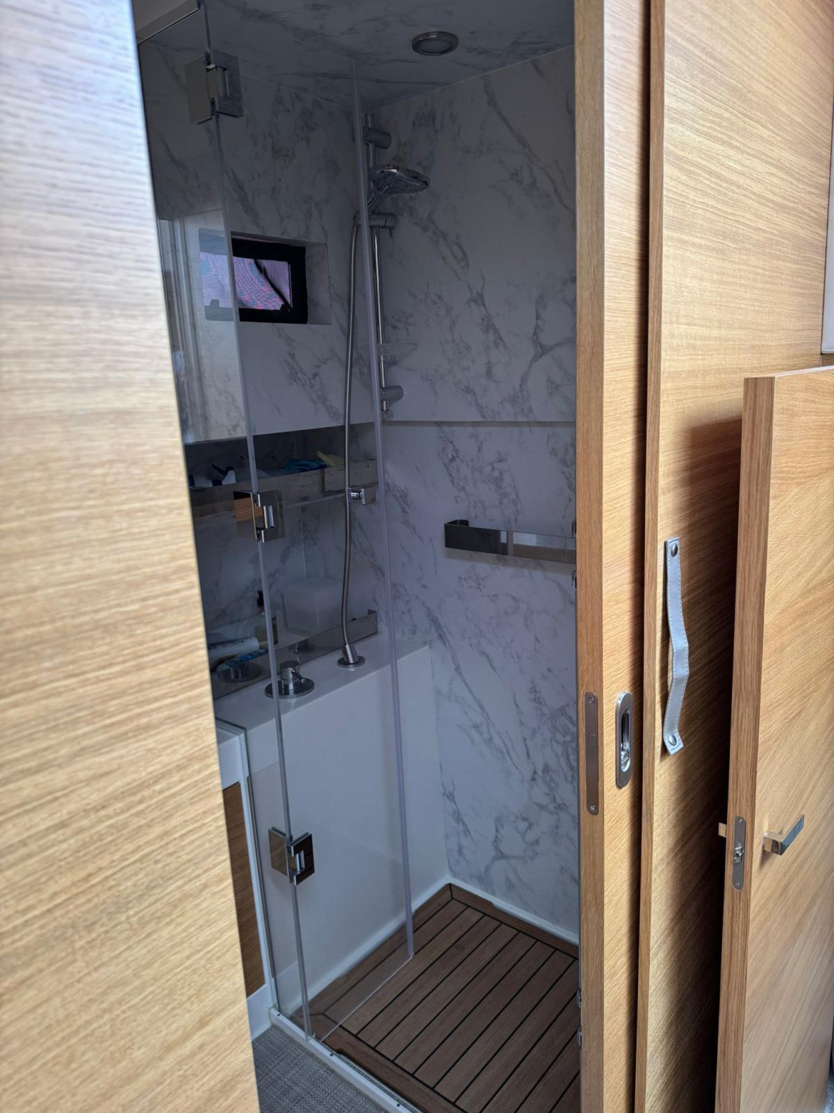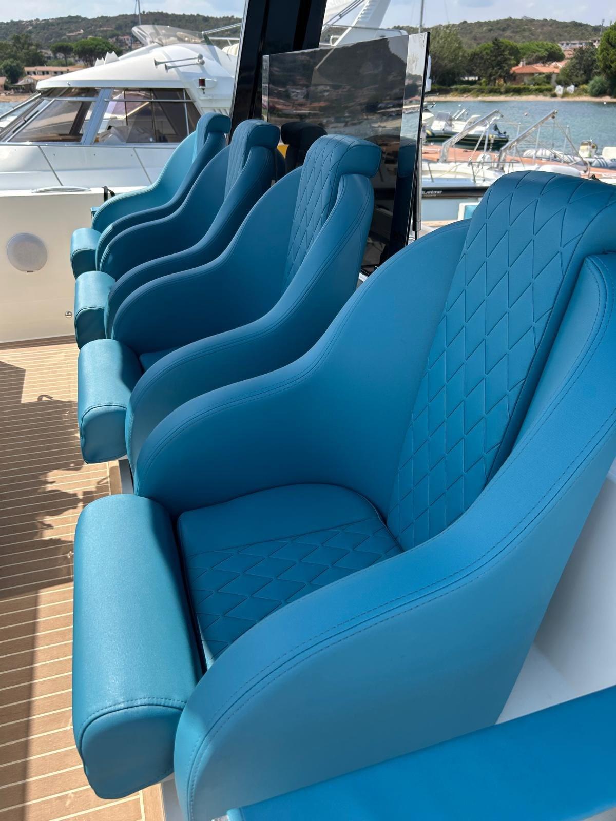 Alarme moteur, Alarme de pompe de cale, Alternateur, Eau sous pression, Passavant en teck, Câble d’alimentation à quai, Douche de cockpit, Flaps électriques, Hard top, Indicateurs de flaps, Lavabo dans le cockpit, Éclairage de courtoisie, Spots sous-marins, Passerelle, Plateforme arrière, Pompe de cale automatique, Pompe de cale manuelle, Cockpit en teck, Prise de quai, Guindeau électrique, Echelle de bain, table de cockpit, Corne.
