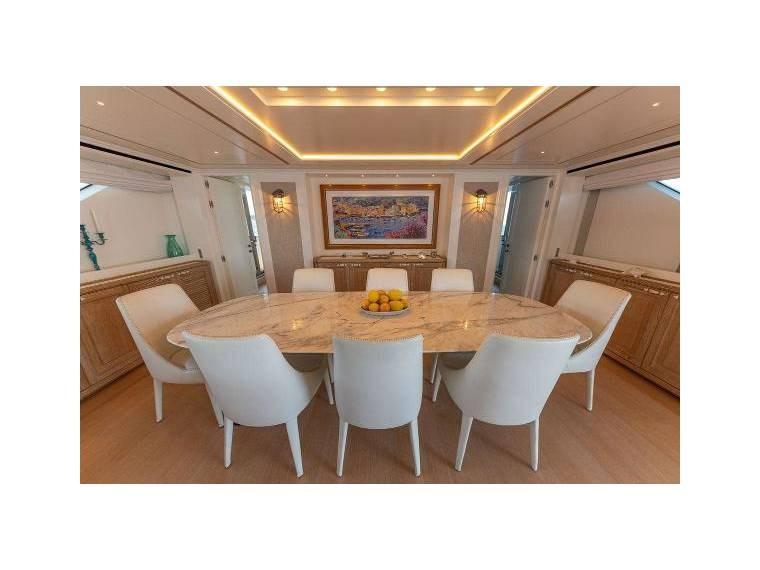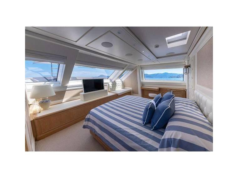 SANLORENZO SD112 accueille confortablement dans un style italien contemporain jusqu’à 11 invités dans 5 cabines avec la suite principale sur le pont principal.