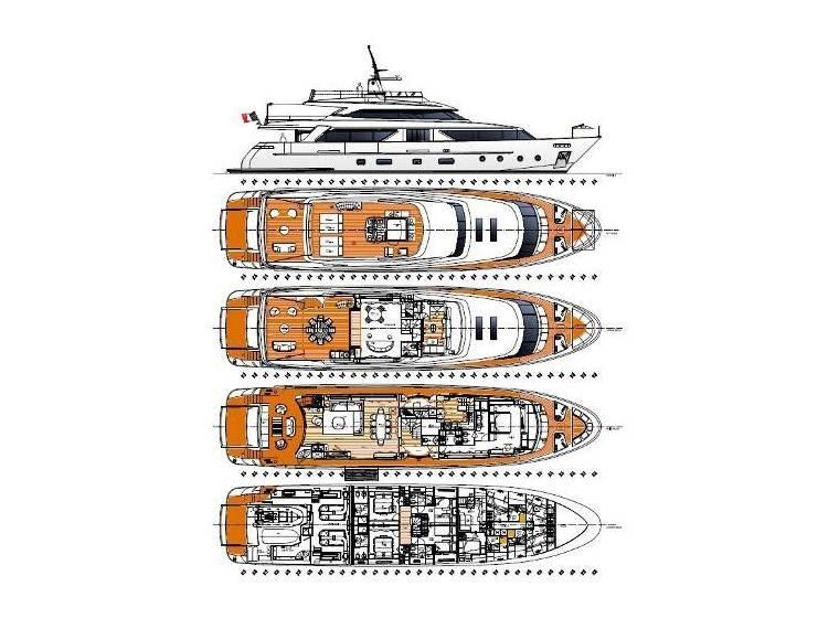 Il s’agit d’un yacht élégant et entièrement équipé à trois ponts, y compris des stabilisateurs.