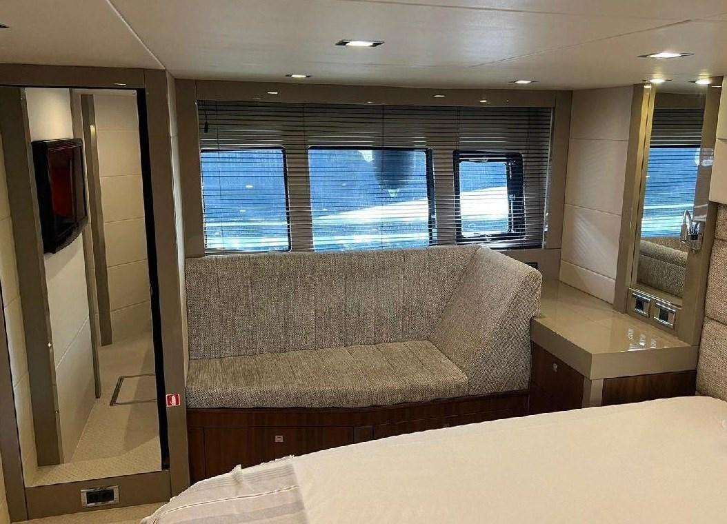 Alarme moteur, Alarme de pompe de cale, Alternateur, Eau sous pression, Câble d’alimentation à quai, Douche de cockpit, Flaps électriques, Garage à annexe, Hard top, Extincteur(s) fixe(s), Indicateurs de flaps, Lavabo dans le cockpit, Éclairage de courtoisie, Passerelle, Plateforme arrière (IDRAULICA), Pompe de cale automatique, Pompe de cale manuelle, Cockpit en teck, Prise de quai, Rollbar, Guindeau électrique, Echelle de bain, table de cockpit, Table pliante de salon, Filières avec sortie latèrale, Corne.