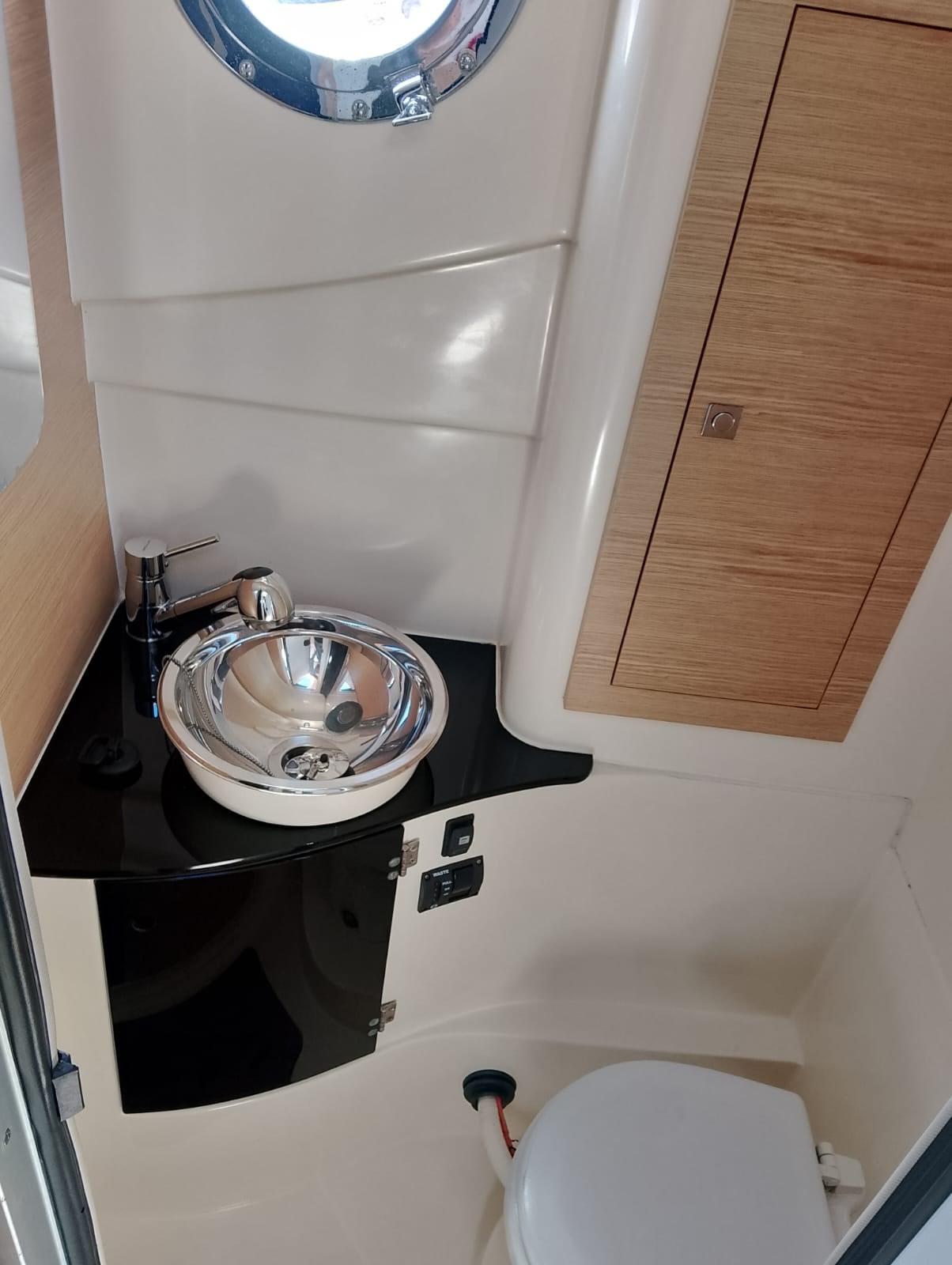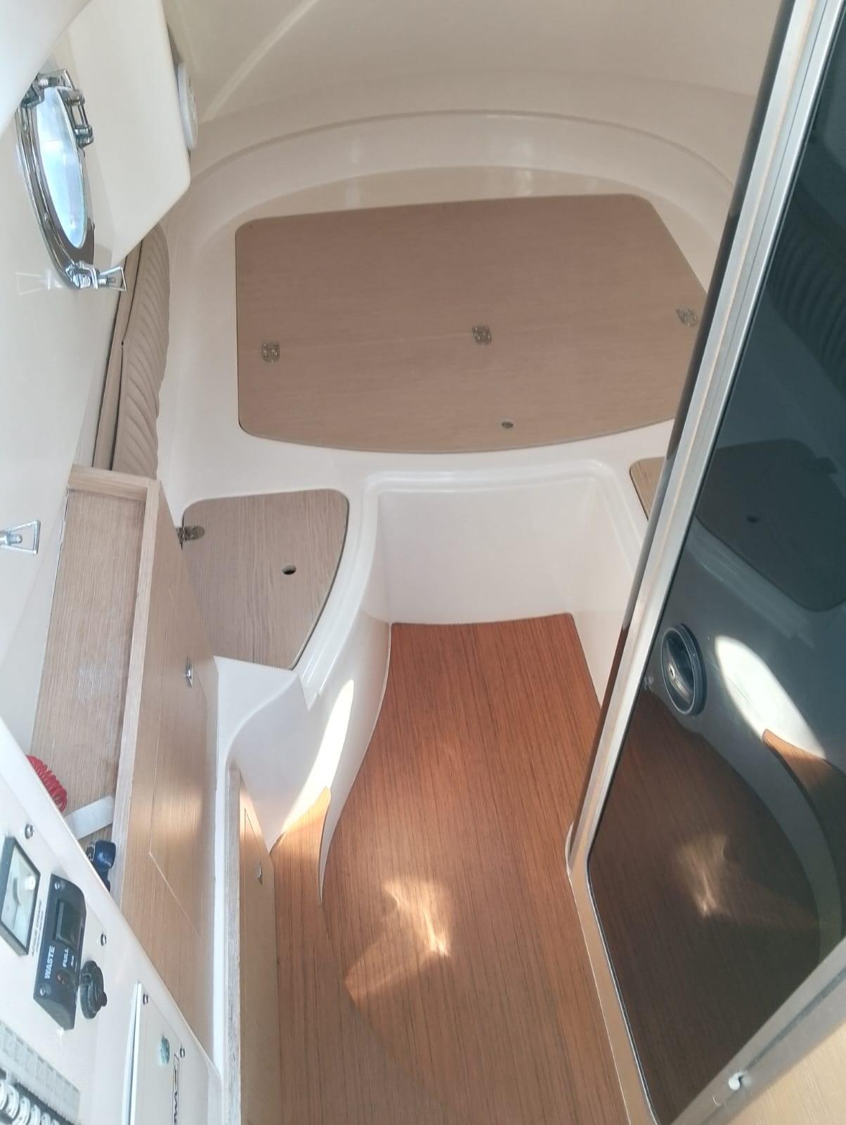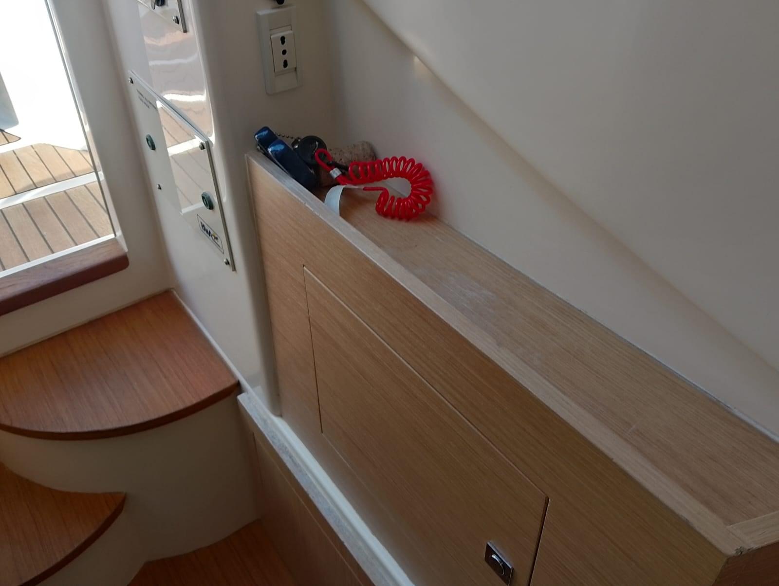 Alarme moteur, Alarme de pompe de cale, Alternateur, Eau sous pression, Câble d’alimentation à quai, Douche de cockpit, Lavabo dans le cockpit, Éclairage de courtoisie, Pompe de cale manuelle, Cockpit en teck, Prise de quai, Rollbar, Guindeau électrique, table de cockpit, Corne.