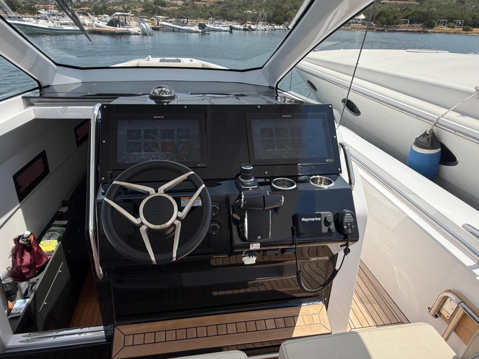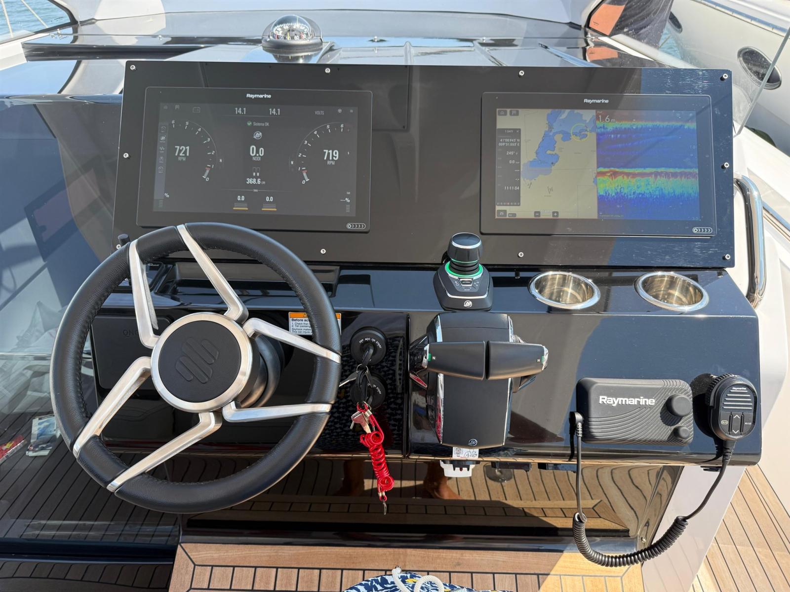 Indicateur d'angle de barre, Ordinateur fixe de bord, Compteur de chaîne, Moniteur, Joystick, Plotter GPS (RAYMARINE n. 2 monitor da 16"), Siège copilote.