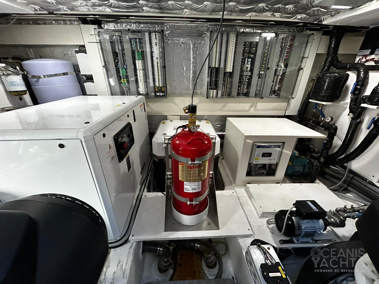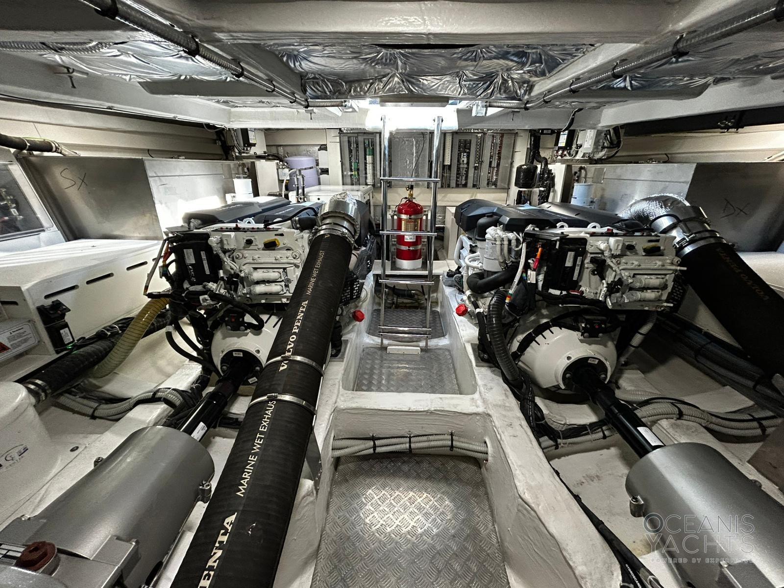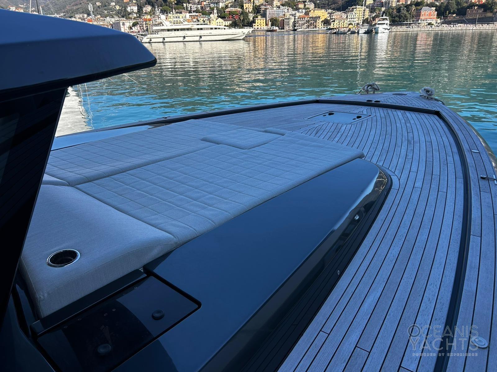 Alarme gaz, Alarme moteur, Alarme de pompe de cale, Alternateur, Auto Dynamic Trim Interceptor, Eau sous pression, Câble d’alimentation à quai, Douche de cockpit, Flaps électriques, Hard top, Éclairage de courtoisie, 8 Défenses, Passerelle (idraulica a scomparsa), Plateforme arrière (idraulica affondabile), Pompe de cale automatique, Pompe de cale manuelle, Pont en teck, Porte latérale, Cockpit en teck, Prise de quai, Guindeau électrique, Echelle de bain, Stabilisateurs (giroscopico), table de cockpit (elettrio), Corne.