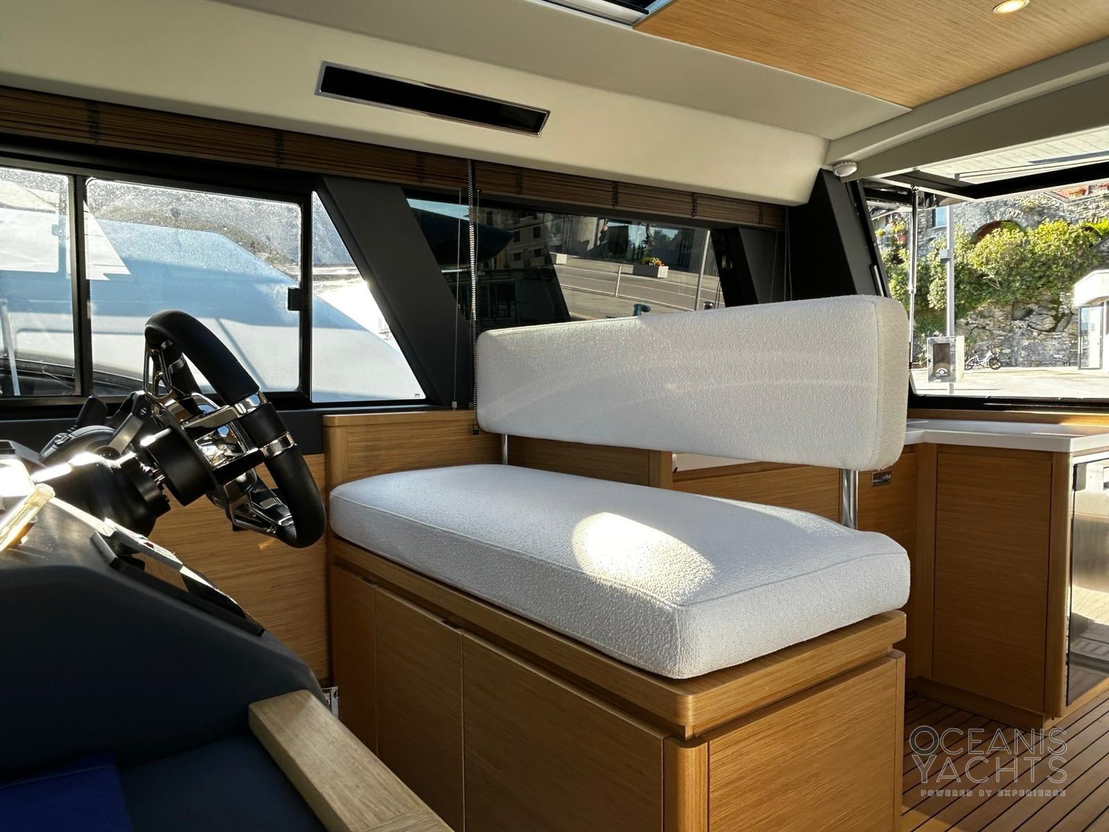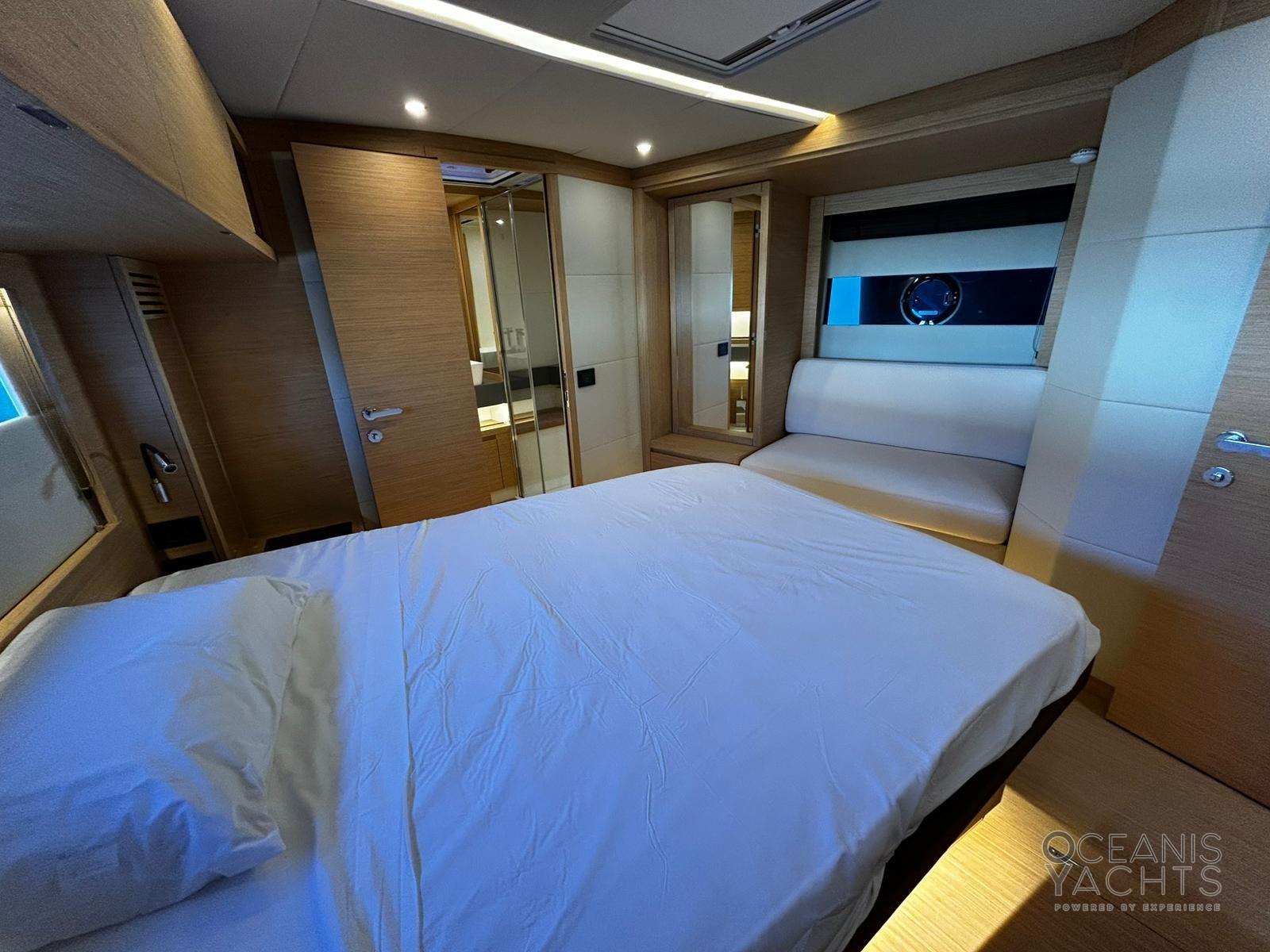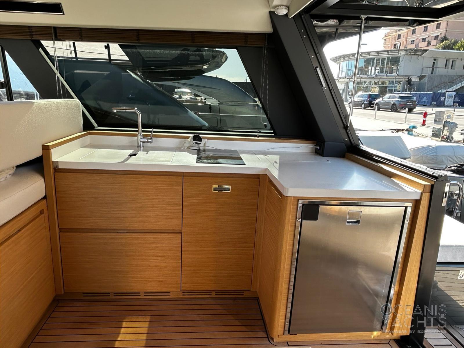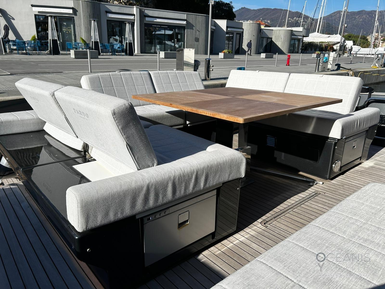 Alarme gaz, Alarme moteur, Alarme de pompe de cale, Alternateur, Auto Dynamic Trim Interceptor, Eau sous pression, Câble d’alimentation à quai, Douche de cockpit, Flaps électriques, Hard top, Éclairage de courtoisie, 8 Défenses, Passerelle (idraulica a scomparsa), Plateforme arrière (idraulica affondabile), Pompe de cale automatique, Pompe de cale manuelle, Pont en teck, Porte latérale, Cockpit en teck, Prise de quai, Guindeau électrique, Echelle de bain, Stabilisateurs (giroscopico), table de cockpit (elettrio), Corne.