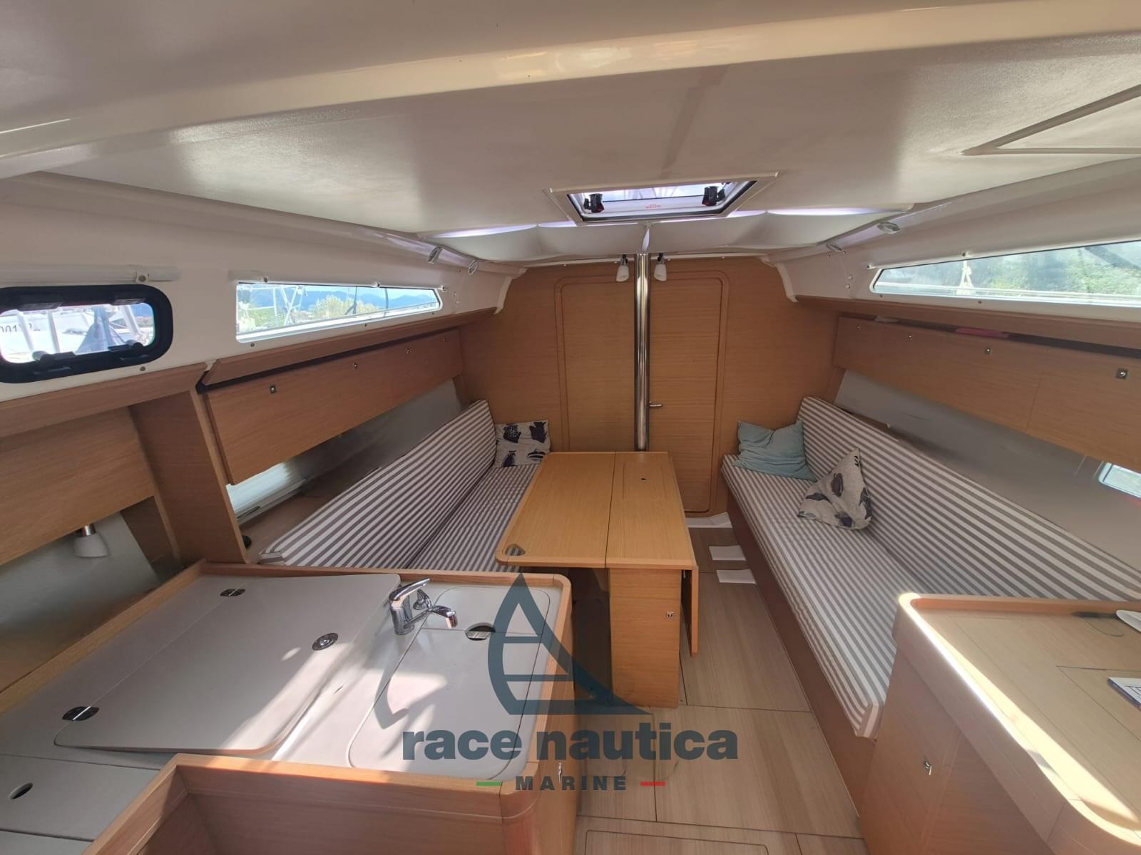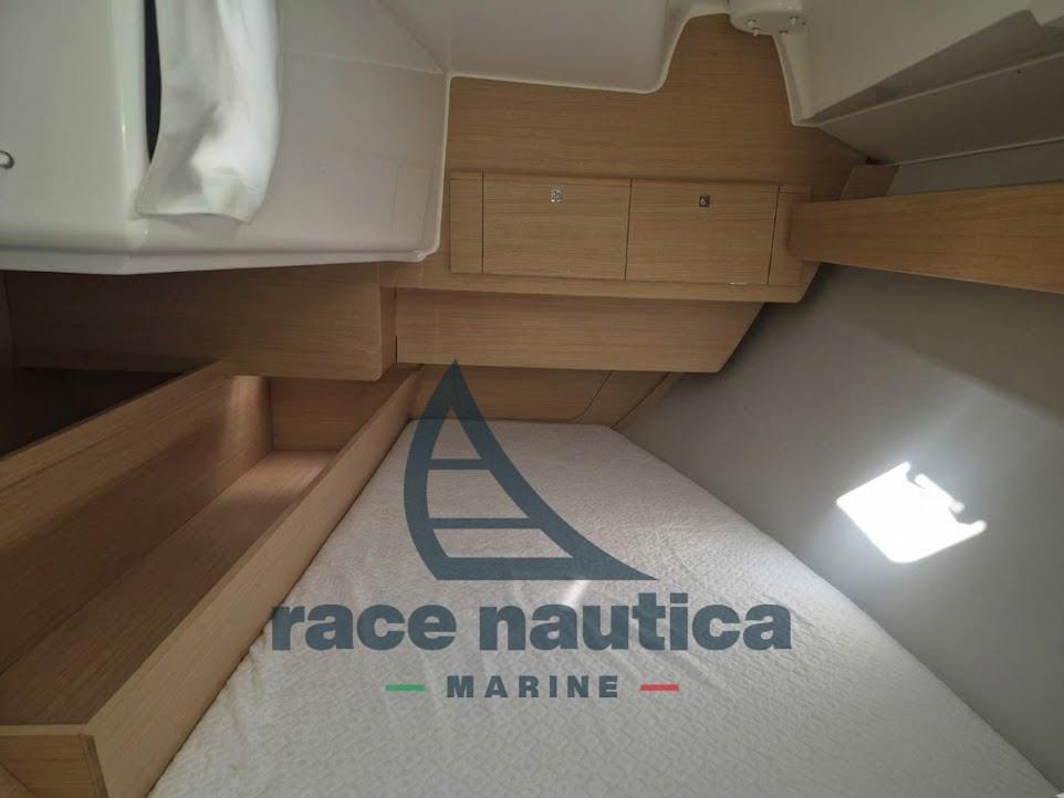 Dufour Yachts 360 de 2021, en excellent état, disponible pour des visites en Ligurie. Version : 2 cabines + 1 salle de bain, intérieurs en chêne. Teck dans le cockpit, Bimini, Auvent, coussins de cockpit, supplément moteur 29 ch Voile-moteur, station de navigation Raymarine i70s côté bâbord, pilote automatique Raymarine Evolution avec moteur rotatif Lewmar et instrument de commande P70S, GPS Raymarine 7" sur la table centrale externe, VHF DSC Ray50, treuil AR T40 pour la grand-écoute, Genoa, Gennaker (y compris la grand-escoûte allemande), Barbecue arrière, équipement Jennaker avec bapré fixe à la proue, hublot supplémentaire à grande ouverture dans la cabine arrière (cockpit bâbord), maisons de timonerie en acier (cuir), enfoncement dans le cockpit, protection de proue en acier inoxydable, bimini couleur chiné, ancre Danforth avec diamètre de chaîne 10 + corde, 6 pare-boues, 3 amarres, hélice motrice à pales fixes, pompe à eau de mer standard, Un poêle à deux feux comme neuf. Compte-tours à remplacer.