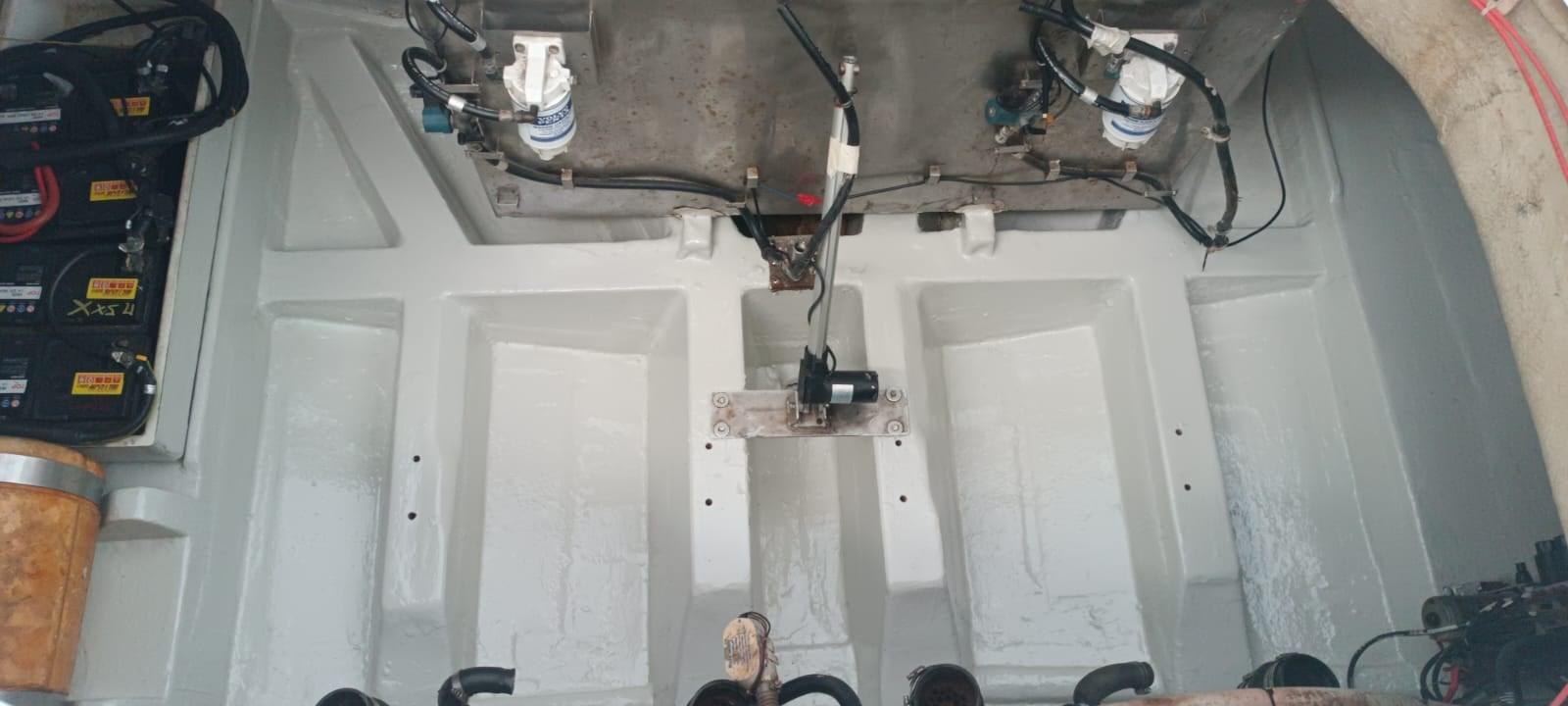 Nouvelle boîte de télécommande mécanique Volvo Penta 2024 (papillon des gaz) - moteurs atterris à cause d’infiltration d’eau due à l’usure des cônes d’échappement - remplacement des cornes d’échappement et service général des moteurs et de l’ensemble arrière - polissage complet du bateau - remplacement de la plaque arrière du moteur droit