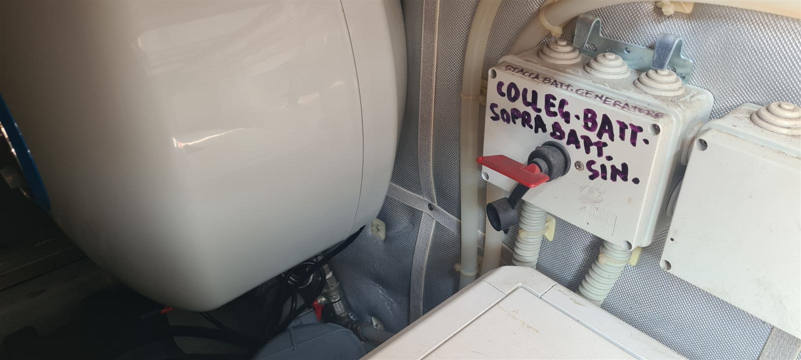 Alarme moteur, Alarme de pompe de cale, Ancre (Inox + catena 50m), 5 Batteries (di cui 2 nuove 2025), Câble d’alimentation à quai, Couleur spéciale (blu), Douche de cockpit, Flaps électriques, Hard top, Indicateurs de flaps, Éclairage de courtoisie (Led touch), 3 Spots sous-marins (led subacque Piranha), Plateforme arrière (in teak), Pompe de cale automatique, Porte latérale, Cockpit en teck, Prise de quai, Connexion eau sous pression à quai, Guindeau électrique, Echelle de bain, table de cockpit (in teak abbattibile), Corne.