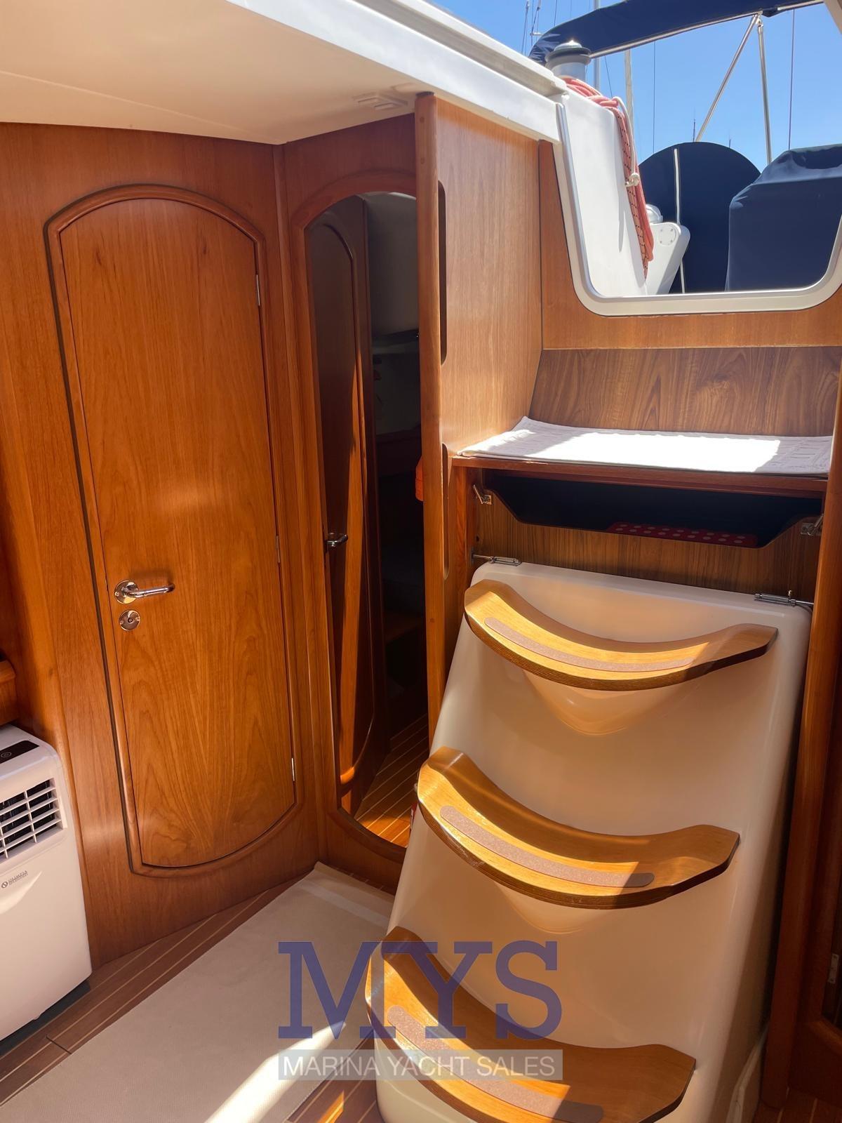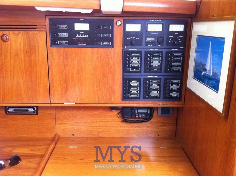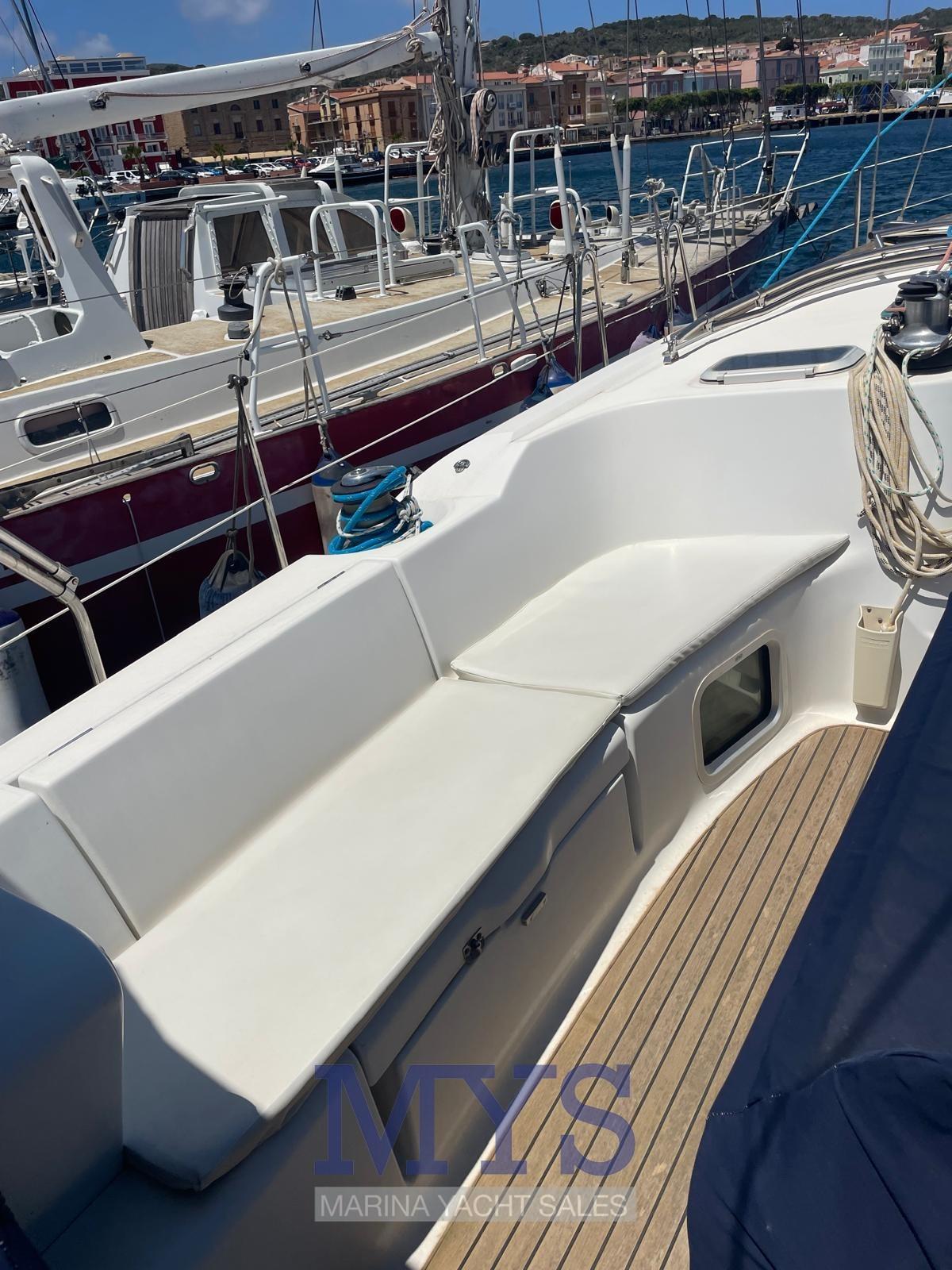 Alarme moteur, Alarme de pompe de cale, Eau sous pression, 4 Batteries, Douche de cockpit, Lavage de chaine, Éclairage de courtoisie, Pompe de cale automatique, Pompe de cale manuelle, Cockpit en teck, Prise de quai, Onduleur, Guindeau électrique, Gréement monotoron, Echelle de bain, Chaise support HB, table de cockpit, Annexe, Corne, 3 Winch.
