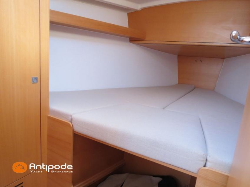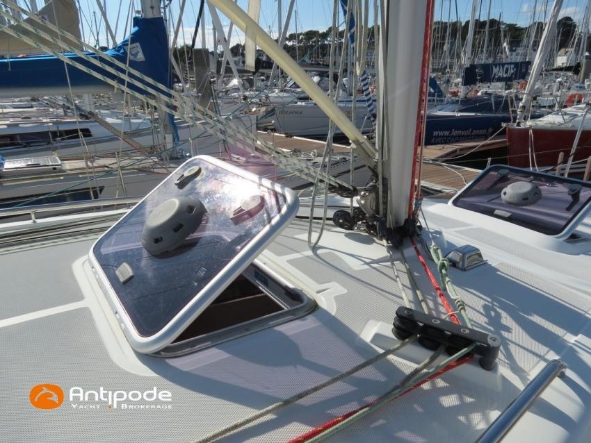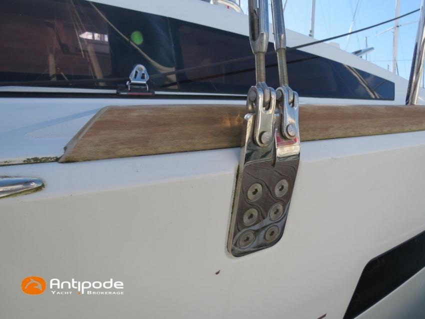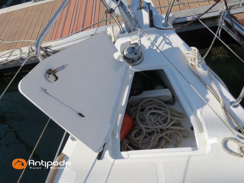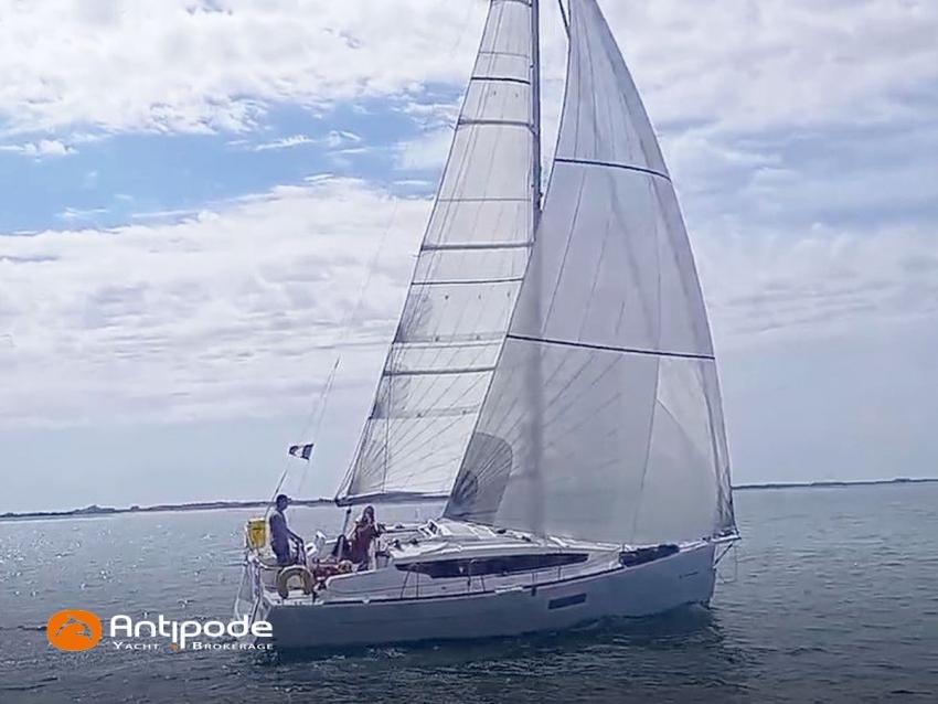Mot du propriétaire : C'est pour réaliser un projet de voyage autour du monde en famille que nous vendons aujourd'hui notre Sun Odyssey 319. J'ai pris énormément de plaisir à naviguer avec lui durant ces deux saisons : en famille l'été en Bretagne, en Normandie et aux Pays Bas, ainsi qu'en solitaire à parcourir la Manche. Nous l'avons équipé pour qu'il soit encore plus confortable et sécurisant, avec notamment le chauffage, la capote de roof et une électronique de dernière génération (pilote in board, lecteur de carte et AIS). C'est un voilier vivant, doté d’un jeu de voiles récent et très complet. Sa taille et ses bi-safrans le rendent particulièrement facile à manoeuvrer. Ce sont d'ailleurs toutes ces qualités qui nous ont donné l'envie d’aller encore plus loin.