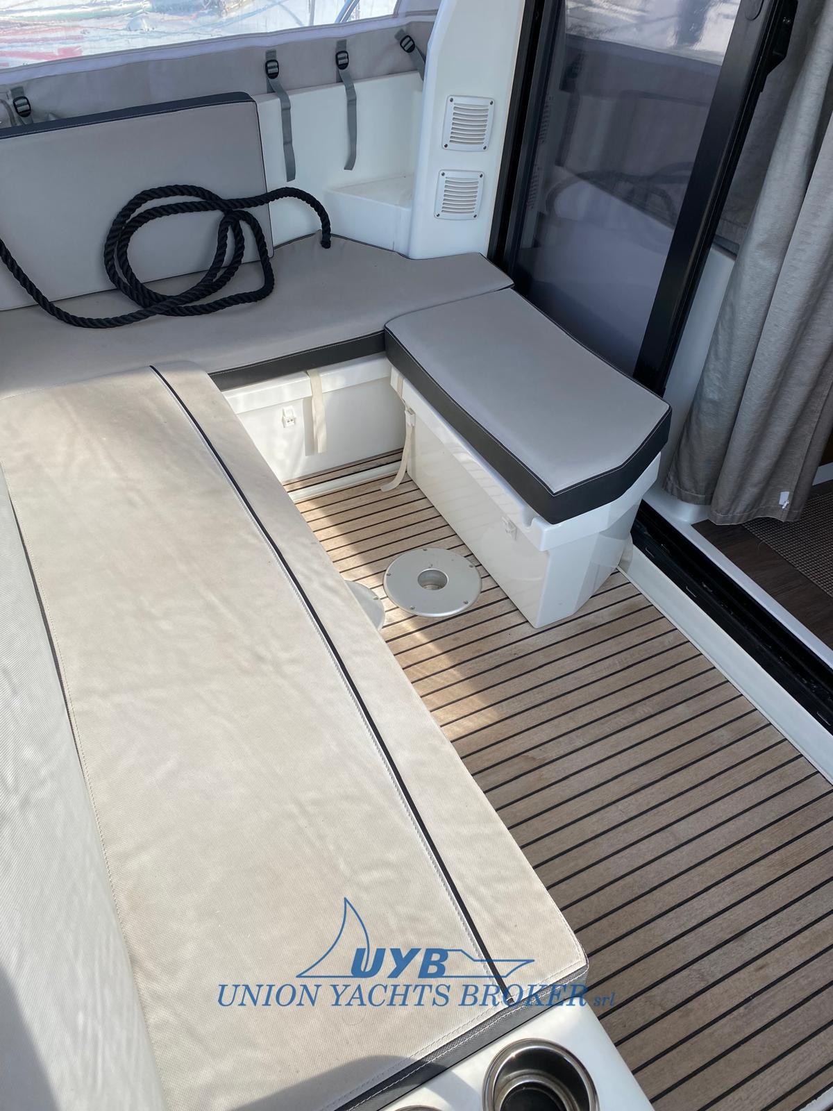 Douche de cockpit, Flaps électriques (Lenco), Hard top (con tettuccio scorrevole e barre porta sup), Passerelle (in teak pieghevole), Plateforme arrière (di prua con scaletta), Pompe de cale manuelle, Porte latérale, Porte latérale, Cockpit en teck, Prise de quai, Guindeau électrique, Echelle de bain.