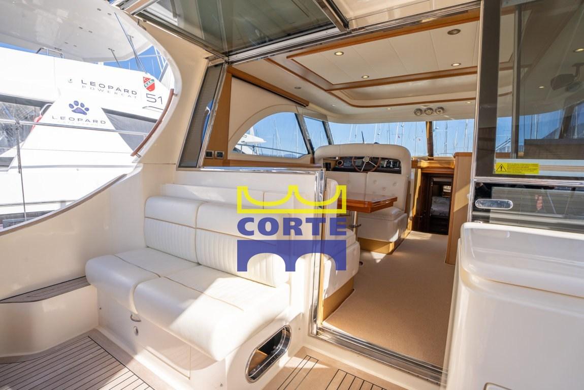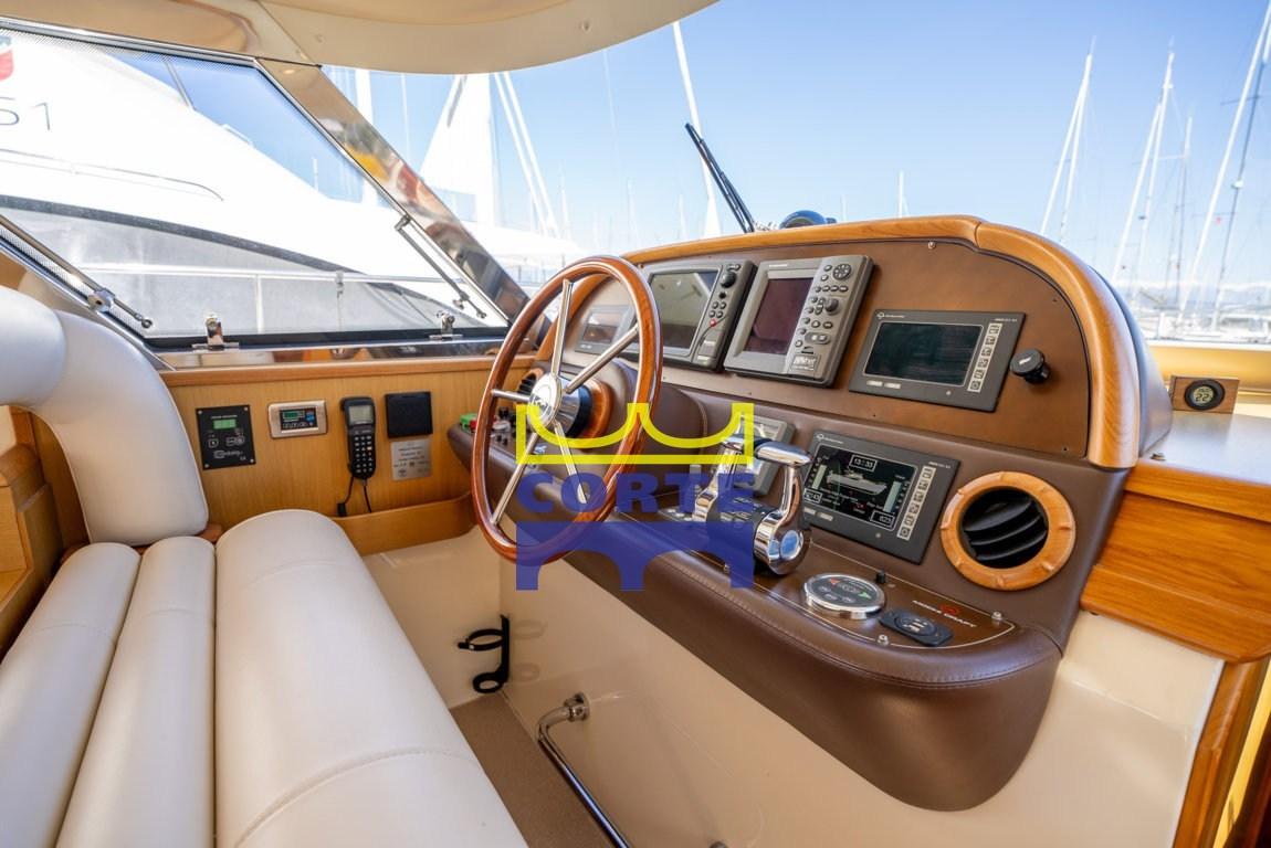 Antenne radar, Compas (Riviera), Commande électrique, Moniteur, GPS (Geonav 11), Pilote automatique (Raymarine ST6002), Radar (Furuno Navnet Vx2), Radio VHF (Simrad Rs 82), Siège copilote.