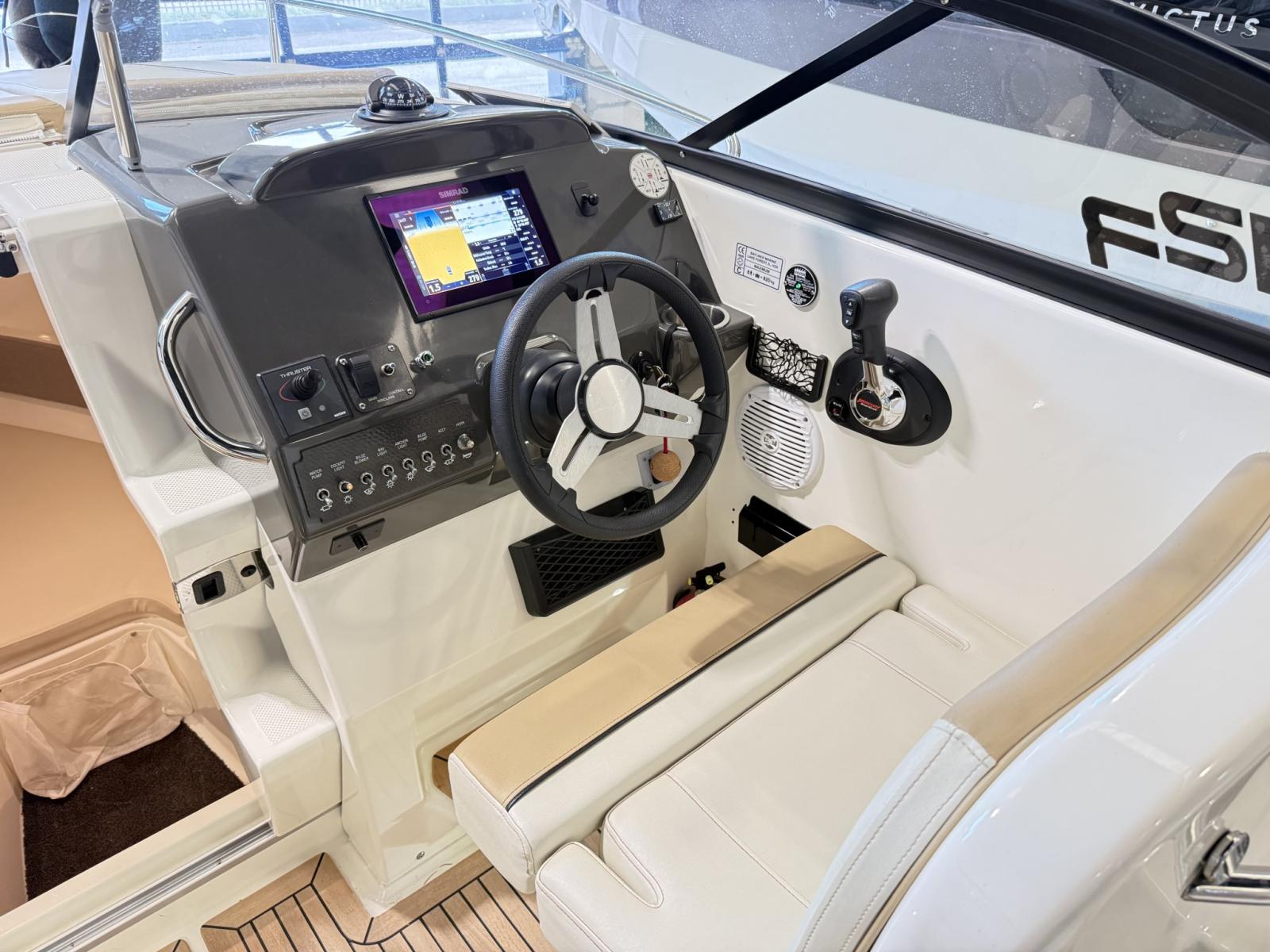 Bateau au design sportif et élégant, parfait pour ceux qui recherchent performance, confort et polyvalence dans une seule coque. Propulsé par un puissant MerCruiser de 350 CV, il garantit une accélération brillante, une excellente navigabilité et un excellent plaisir de conduite.
