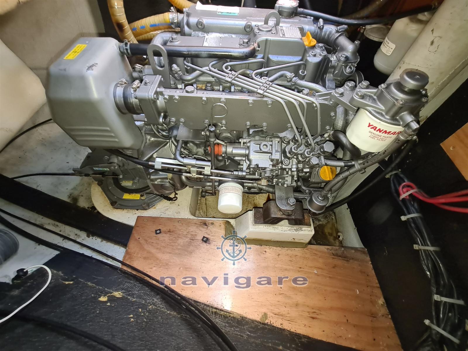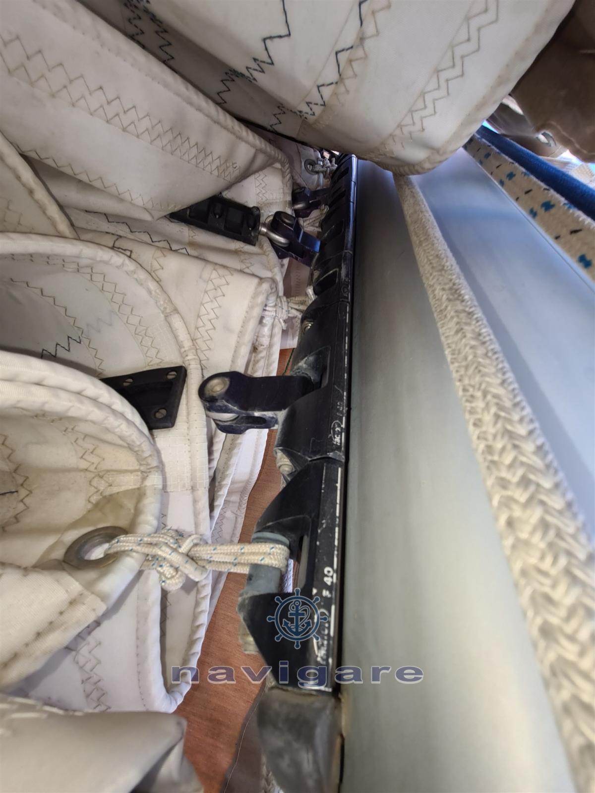 Alarme moteur, Alarme de pompe de cale, Eau sous pression, 6 Batteries (2021), Chargeur de batterie (2023), Douche de cockpit, Hélice de rechange, Bossoirs pour annexe, Lavage de chaine, Lavabo dans le cockpit, Éclairage de courtoisie, Spots sous-marins, Panneau solaire, Passerelle (in carbonio, larga 50 cm), Pompe de cale automatique, Pompe de cale manuelle, Cockpit en teck, Prise de quai, Connexion eau sous pression à quai, Guindeau électrique (2023), Gréement monotoron, Echelle de bain, Système de filtration des eaux usées, table de cockpit, Filières avec sortie latèrale, Winch, Winch électrique arrière, Windex.