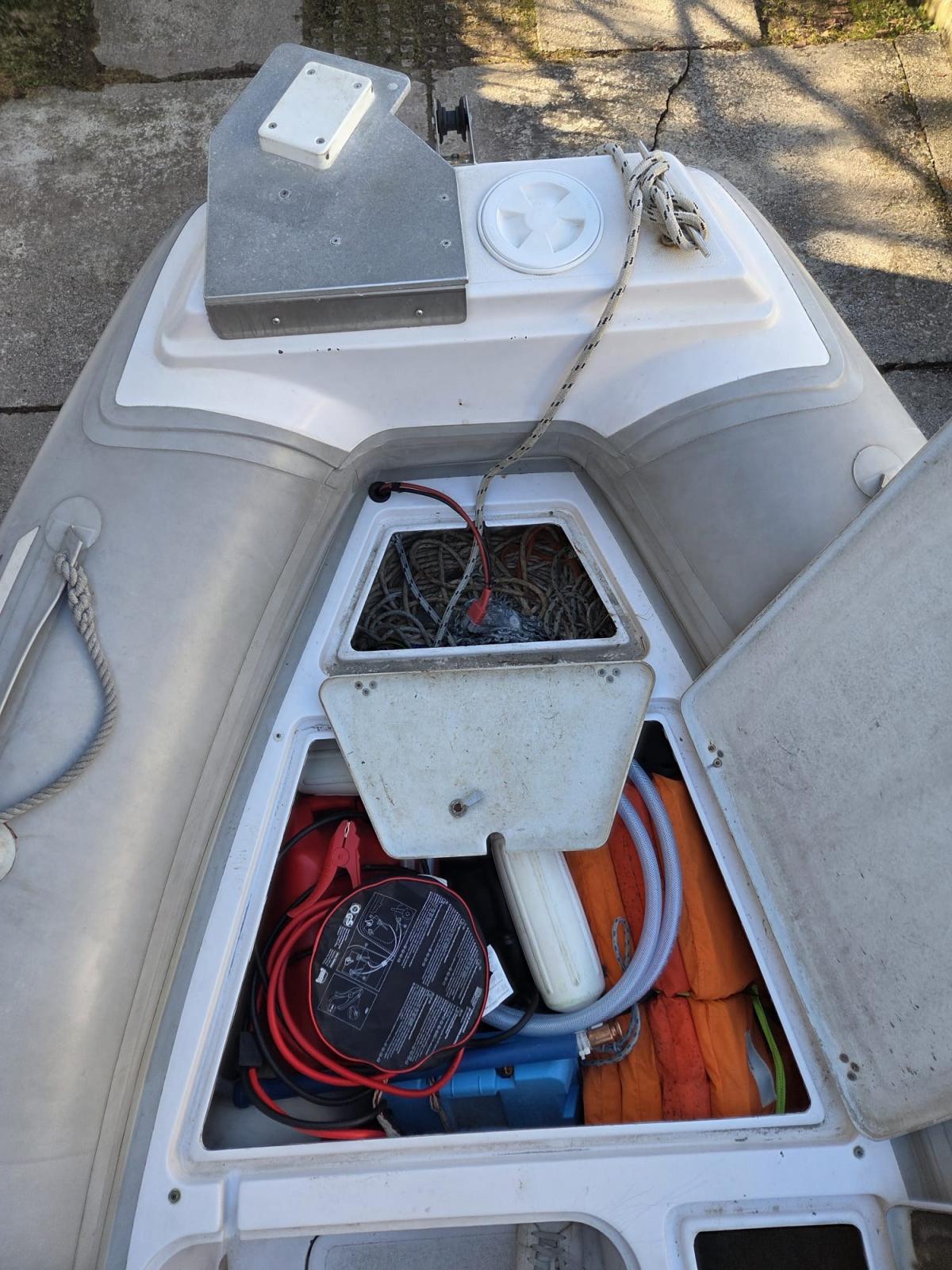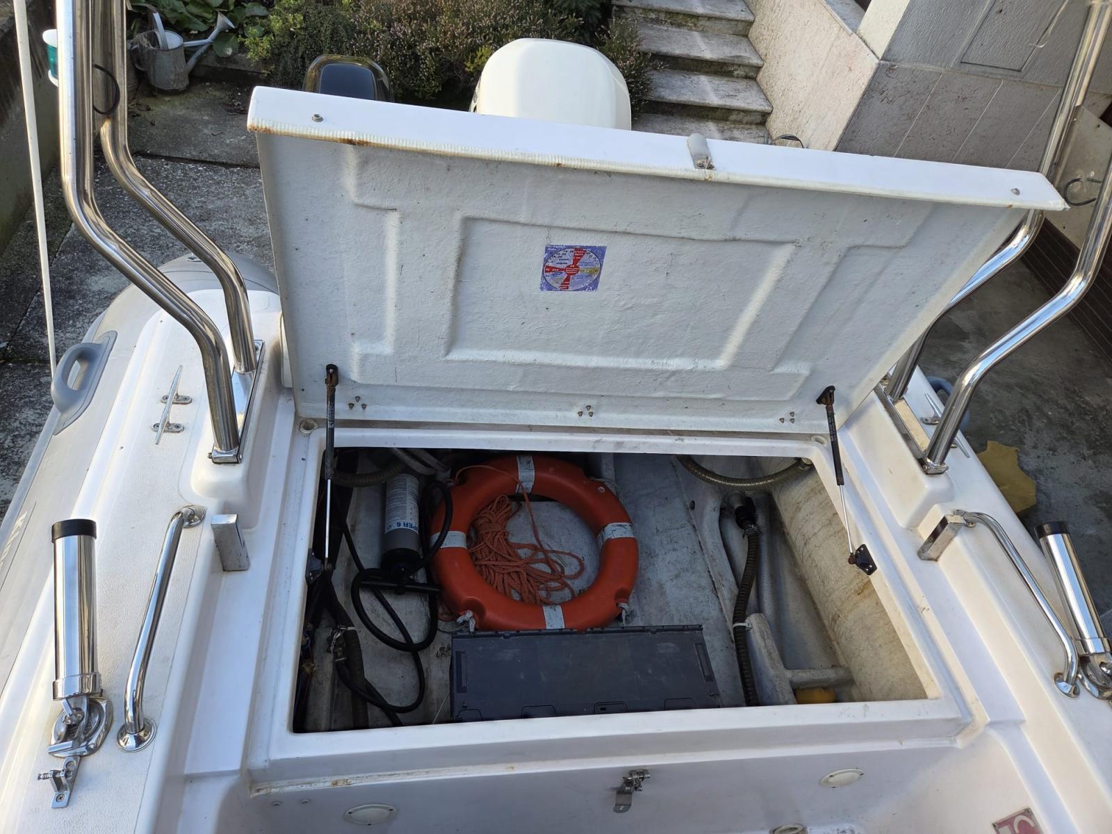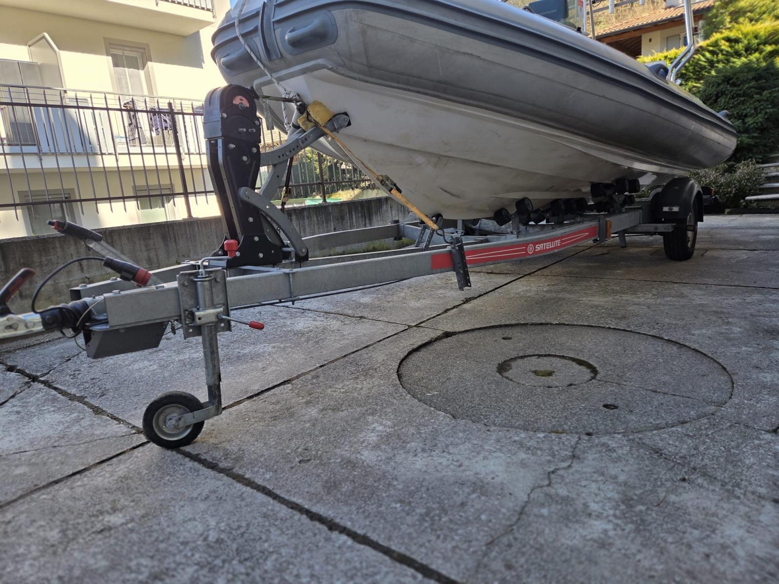 remorque (Satellite 1500 2018), Câble d’alimentation à quai, Douche de cockpit, Éclairage de courtoisie, Rollbar, Guindeau manuel, Corne.