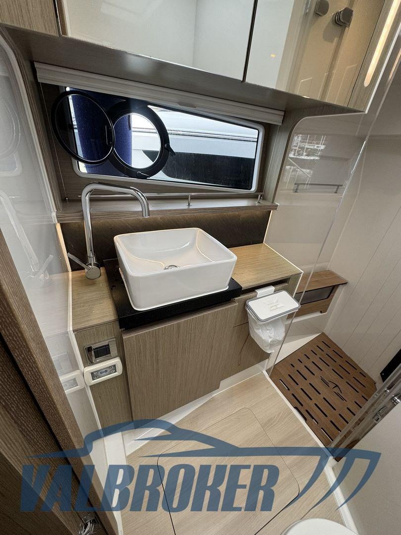 Flybridge du chantier naval allemand, propulsé par 2 moteurs turbo diesel Common Rail 2x Volvo D6 IPS600 et avec seulement 295 heures de moteur. L’entretien était effectué régulièrement par le centre officiel de service Volvo Penta. Intérieur en bois clair. Sous le pont, il y a trois cabines plates : deux cabines doubles et une cabine d’amis avec deux lits séparés et deux salles de bains. Cuisine avec four, plaque à induction, lave-vaisselle et deux grands réfrigérateurs. Générateur, propulseur d’étrave, joystick de manœuvre Volvo Penta, climatisation réversible.