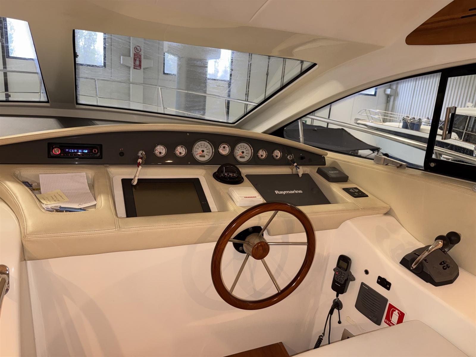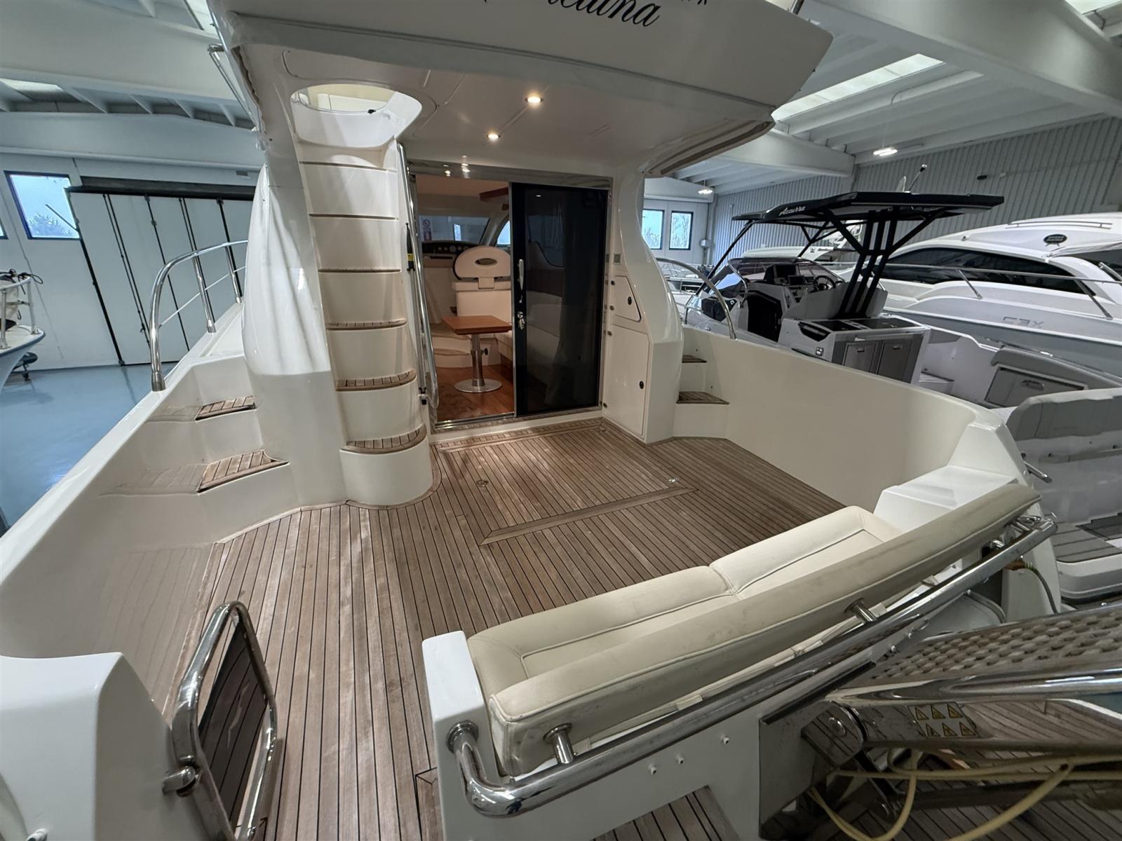 Alarme gaz, Alarme moteur, Eau sous pression, Câble d’alimentation à quai, Douche de cockpit, 2 Flaps hydrauliques, Passerelle (IDRAULICA), Plateforme arrière, Pompe de cale automatique, Cockpit en teck, Prise de quai, Rollbar, Guindeau électrique, Echelle de bain, Corne.