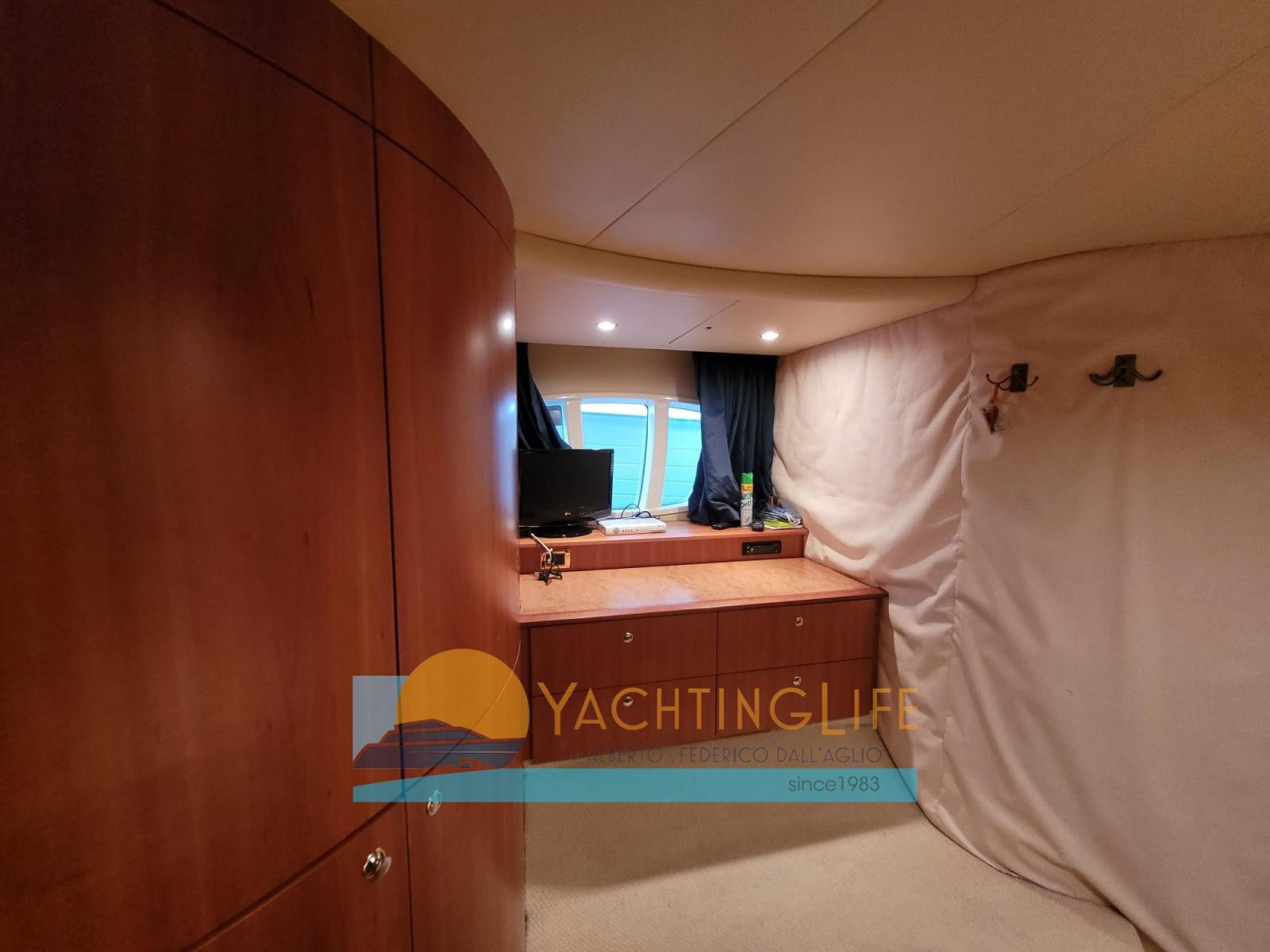 Alarme moteur, Alarme de pompe de cale, Eau sous pression, Radeau de sauvetage (da revisionare), Douche de cockpit, Double barre à roue, Flaps hydrauliques, Grue de flybridge, Extincteur(s) fixe(s), Indicateurs de flaps, Éclairage de courtoisie, Passerelle (idraulica portata 250kg), Plateforme arrière, Pompe de cale automatique, Cockpit en teck, Prise de quai, Guindeau électrique, Echelle de bain, Selles pour Annexe, table de cockpit, Annexe (Novurania 320 e motore 20hp), Corne, 2 Winch électrique arrière.