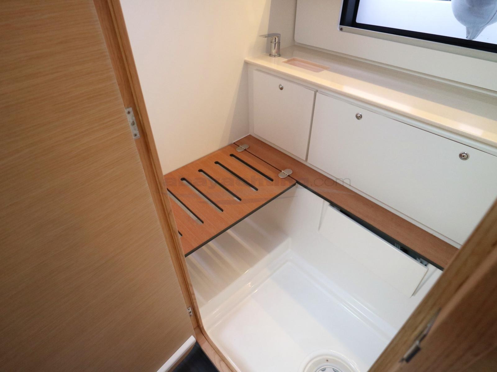 Ancre (Delta + catena 75 mt DM 8), Eau sous pression, Douche de cockpit, Double barre à roue (doppia ruota composito bianca), Propulseur d'étrave (Tunnel), 8 Défenses, Plateforme arrière (Apribile manuale), Pompe de cale manuelle, Prise de quai, Connexion eau sous pression à quai, Guindeau électrique, Gréement monotoron, Echelle de bain, Chaise support HB, table de cockpit (Apribile), 4 Winch (Di cui 1 elettrico), Windex.