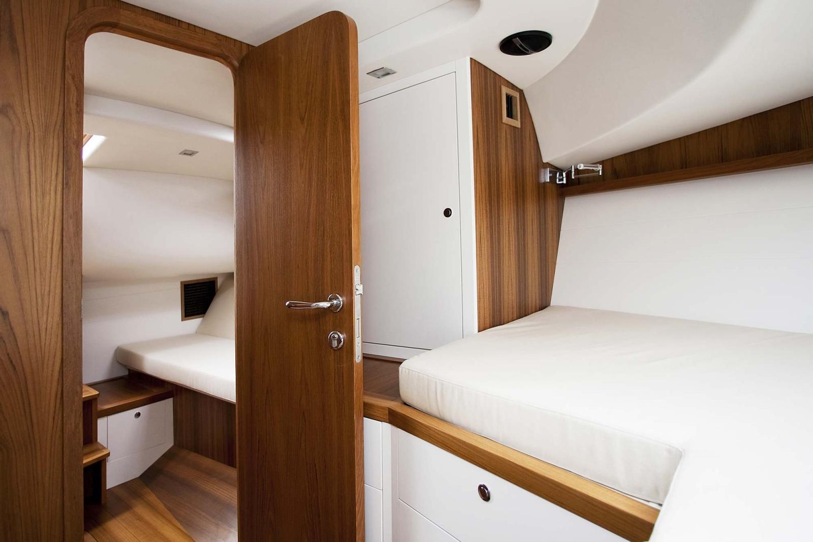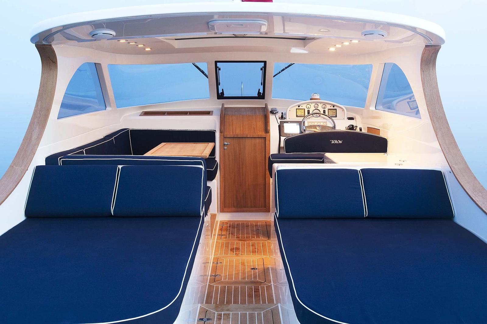 Le Toy 36 de Toy Marine est un bateau à homard de 11 mètres (36 pieds) qui réinterprète le style américain classique, produit en Italie, à Savone, de manière moderne et élégante, en un « petit chef-d’œuvre » semi-personnalisé. Réputée pour sa coque profonde en V, elle offre stabilité, confort et des lignes intemporelles, idéales pour les croisières d’une journée. Inspiré par les bateaux américains de homard des années 30, il combine une élégance italienne, déclinée par des matériaux de haute qualité et une attention sartoriale aux détails. Il dispose d’un grand cockpit, d’une salle à manger couverte avec toit ouvrant, d’une terrasse ouvrière à l’avant et d’une cabine principale en forme de V, équipée d’une salle de bain avec douche. Conçu pour être sûr et facile à manœuvrer, il monte des moteurs facilement accessibles sur la ligne d’arbre, sous les triomphants ponts ouvrants arrière. Le Toy 36 est à juste titre considéré comme un précurseur du genre du homard en Italie, apprécié pour sa gamme classique intemporelle.