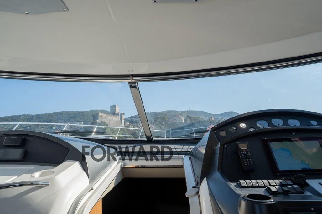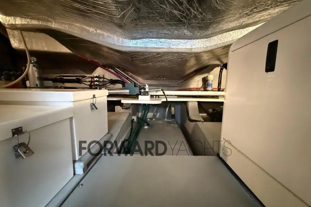 De nombreux accessoires et améliorations : coque fraîchement peinte en bleu et porte de garage en blanc (juin 2025), toit rigide à ouverture électrique, nouveaux coussins extérieurs, nouveau teck sur la grille de la passerelle, feux de plongée, climatisation.