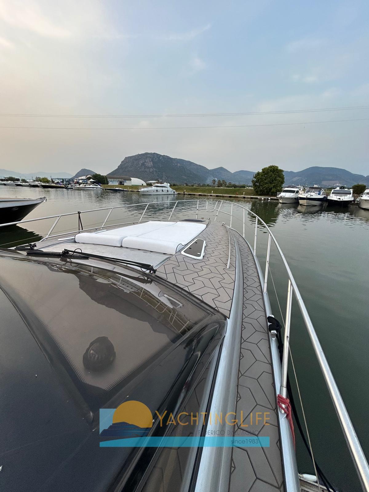 Alarme moteur, Alarme de pompe de cale, Alternateur, Eau sous pression, Douche de cockpit, Flaps hydrauliques, Garage à annexe, Extincteur(s) fixe(s), Indicateurs de flaps, Éclairage de courtoisie, Passerelle (idraulica), Pompe de cale automatique, Porte latérale, Prise de quai, Rollbar, Guindeau électrique, table de cockpit, Annexe, Corne, Winch électrique arrière.