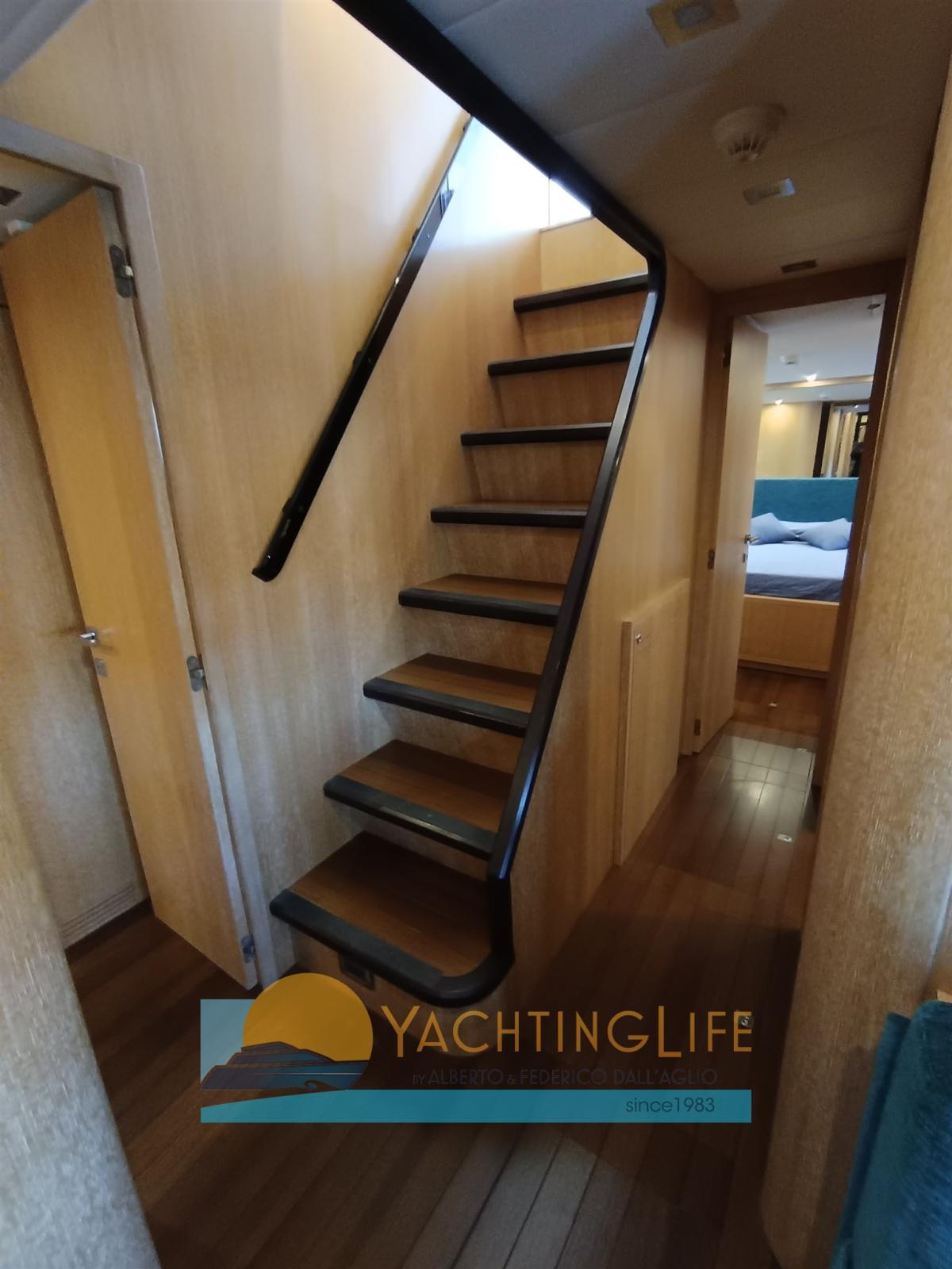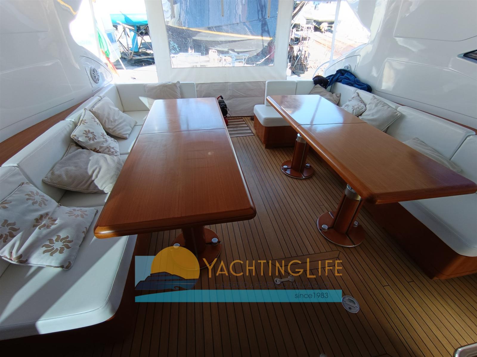 Alarme moteur, Alarme de pompe de cale, Eau sous pression, 4 Chargeur de batterie (Nuovi), Douche de cockpit, Phare de poursuite, Flaps hydrauliques, Garage à annexe, Hard top, Extincteur(s) fixe(s), Indicateurs de flaps, Lavage de chaine, Lavabo dans le cockpit, Éclairage de courtoisie, Passerelle (Idrulica a scomparsa), Plateforme arrière, Pompe de cale automatique, Porte latérale, Cockpit en teck, Prise de quai, Guindeau électrique, Echelle de bain (Elettrica), table de cockpit, Filières avec sortie latèrale, Corne, Winch électrique arrière.